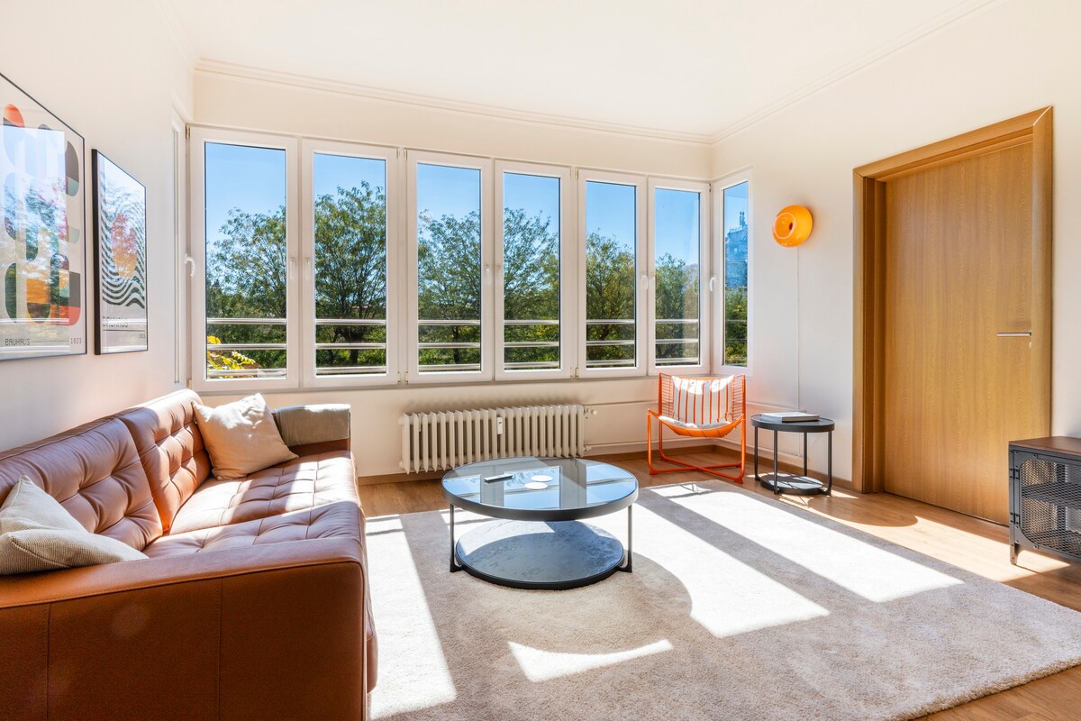Discover your perfect getaway in this bright, Bauhaus-style apartment blending mid-century charm with modern comforts. Ideal for music lovers, it features a Bluetooth speaker, vintage record player, and curated vinyls. Perfect for families or small groups, it includes two bedrooms: one king and one double. Enjoy stunning southern views, abundant sunlight, and privacy. Just minutes from pedestrian areas, it offers both tranquility and prime access to local shops and attractions. Book now!