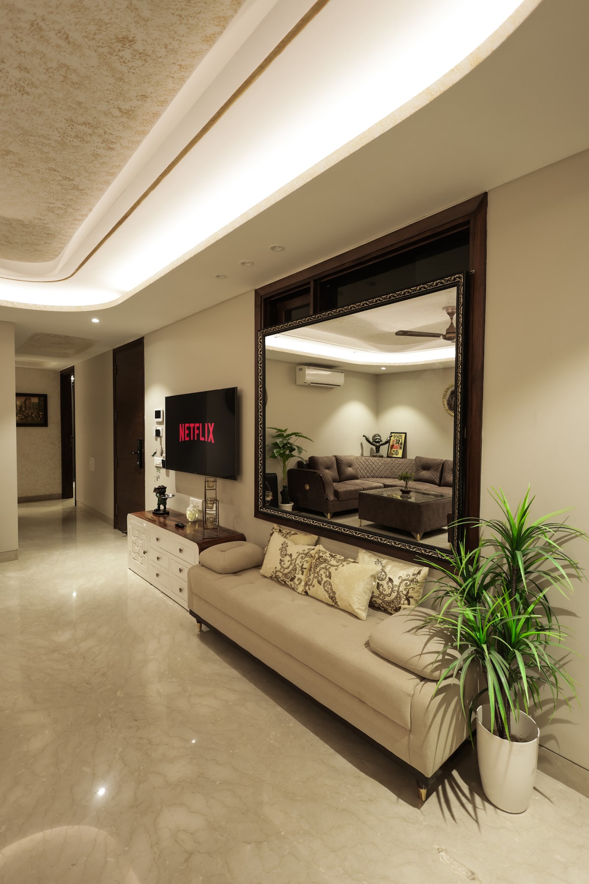 Gurgaon's top rated 1 BHK apartment above Sapphire 83 Mall - 250 reviews, 4.98★. Ultra clean setup, dedicated workstation, 200Mbps WiFi with UPS backup and free covered parking. Our strategic location offers easy access from NH48, Dwarka Expressway, SPR, and major hubs like American Express, TCS, Skyview Corporate Park, DLF Corporate Greens. Inox, restaurants, gym and pubs are inside your building. Built for business travellers who refuse to compromise.