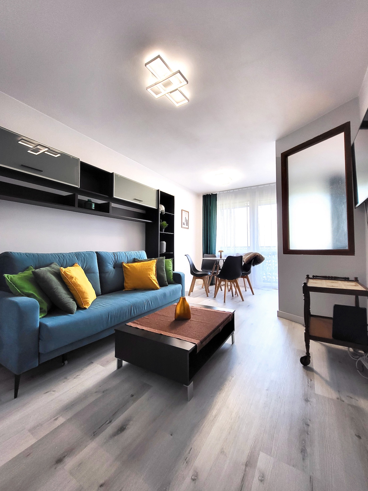 A luxurious loft-style apartment located in an over a hundred-year-old tenement house. Due to the extremely high ceilings and windows you can feel space and light. While designing the interior of our cosy accommodation, we tried to combine comfort with luxury. The bedroom has been separated from the living area, so up to 4 people can comfortably spend time here. The central location of this appartment is an excellent starting point for any excursions