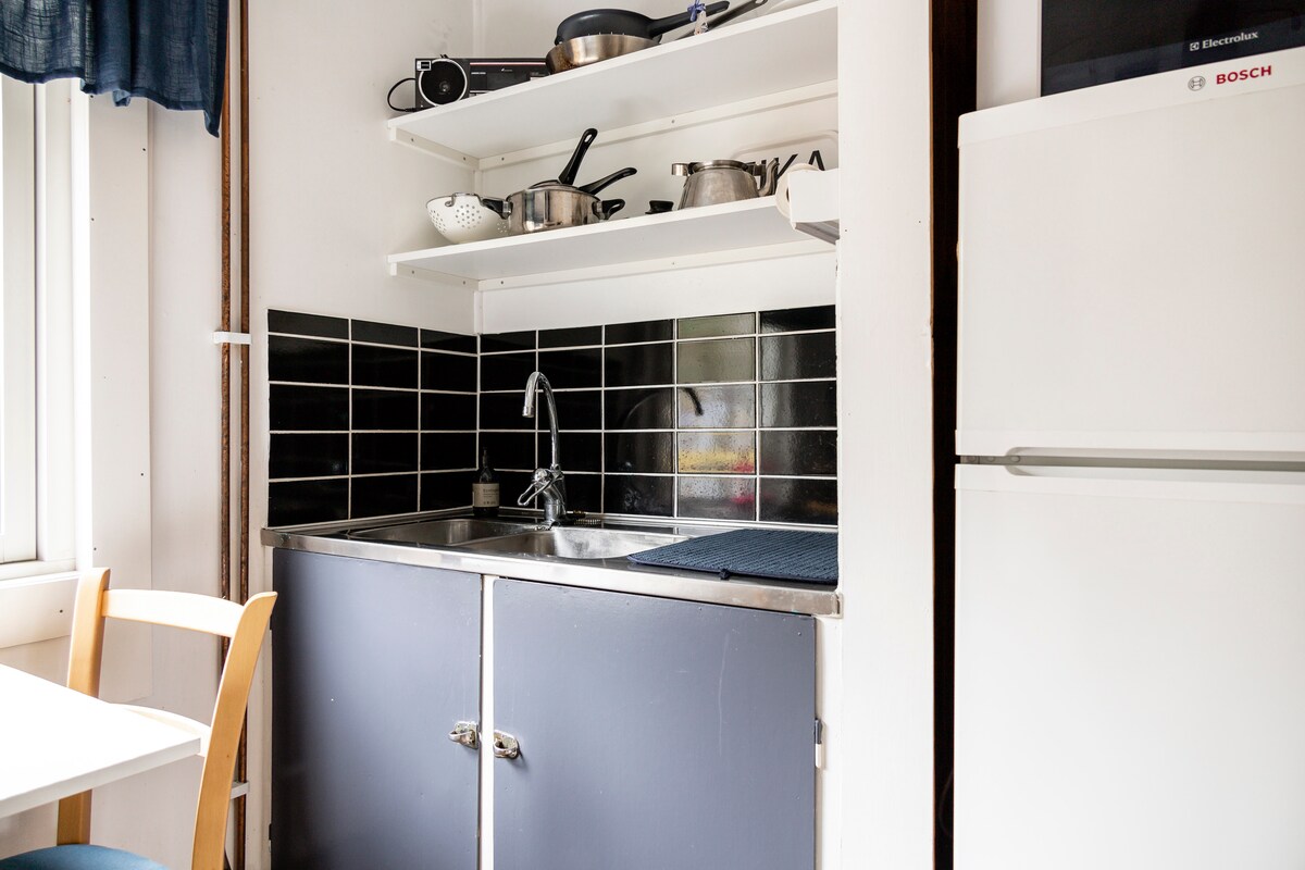 Charming cabin that fits up to six people. Please be advised that it is a rather small cabin and not a house, so if you are six adults and not used to Scandinavian cabins it may feel a bit tight. Toilet in the cabin and access to a shower/sauna in an adjacent building and a gazebo in the garden. The cabin was entirely redecorated and a new kitchen installed in September 2019. Most furniture is from 2016. Possible to get to it by public transportation, but even better if you have access to a car.