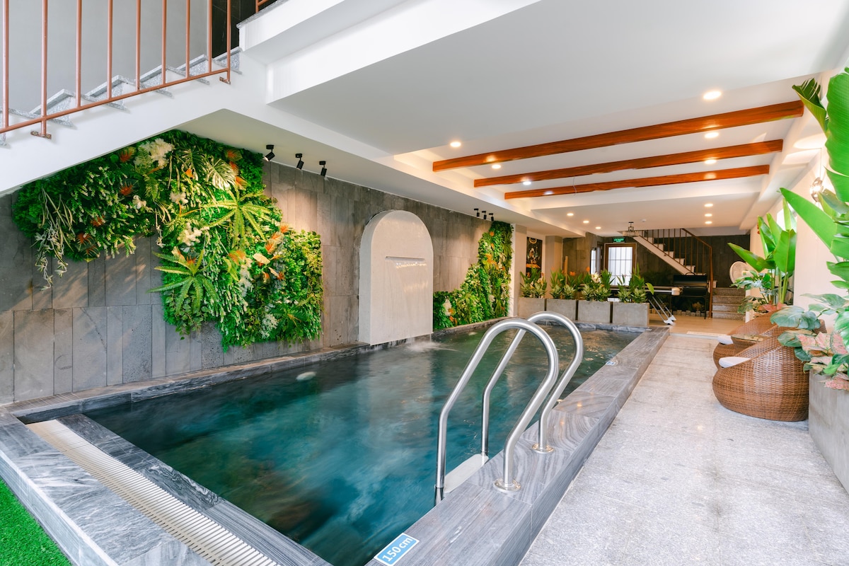 *Immerse yourself in the nature of Son Tra mountain forest-the green lung of Da Nang City. An villa includes 2 bedrooms and 1 attic with available amenities: * Natural waterfall swimming pool * Entertainment room in the attic, space for children and parents to enjoy the clouds and mountains, watch cartoons with available projector and screen, Bluetooth speakers to listen to music **Himalayan salt sauna **Relaxing massage chair, exercise bike *Free airport pick-up for guests staying from 3 nights