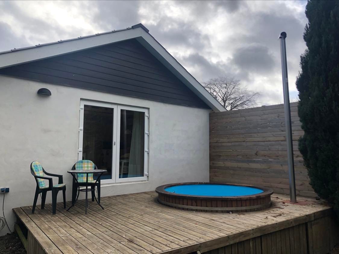 Welcome to our beautiful Container Home in the middle of nowhere - still providing everything you need. Now with a Hot Tub under the stars! You'll take a hot bath in the woods, gaze into the fire pit, wake up to the sound of the birds, drink your coffee next to a deer - all while using high-speed WiFi for your favourite Netflix show in the cozy queen size bed. With love, we made sure to use the space most efficiently to create the best experience for you. *Heated and warm in winter 🙂