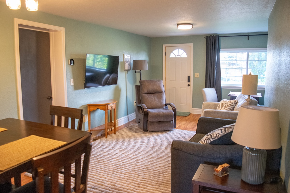 Arxada oturub dincəlmək vaxtıdır, çay vaxtı buradasınız! İstirahət və əyləncə üçün nəzərdə tutulmuş 1200sqft süitanız var. Alış-veriş, yemək və açıq hava fəaliyyətlərinin yaxınlığında rahat yerləşir, lakin heç vaxt dinclik və istirahətdən ayrılmaq istəməyə bilərsiniz. Böyük və əzəmətli gəmilərin yanından keçərkən kayakda avar çəkə və ya veranda mebelinin komfortlarından çayın inanılmaz mənzərələrini seyr edə bilərsiniz. Gözəl mənzildə heyranedici mənzərələr buranı çay kənarındakı unudulmaz bir yerə çevirir.