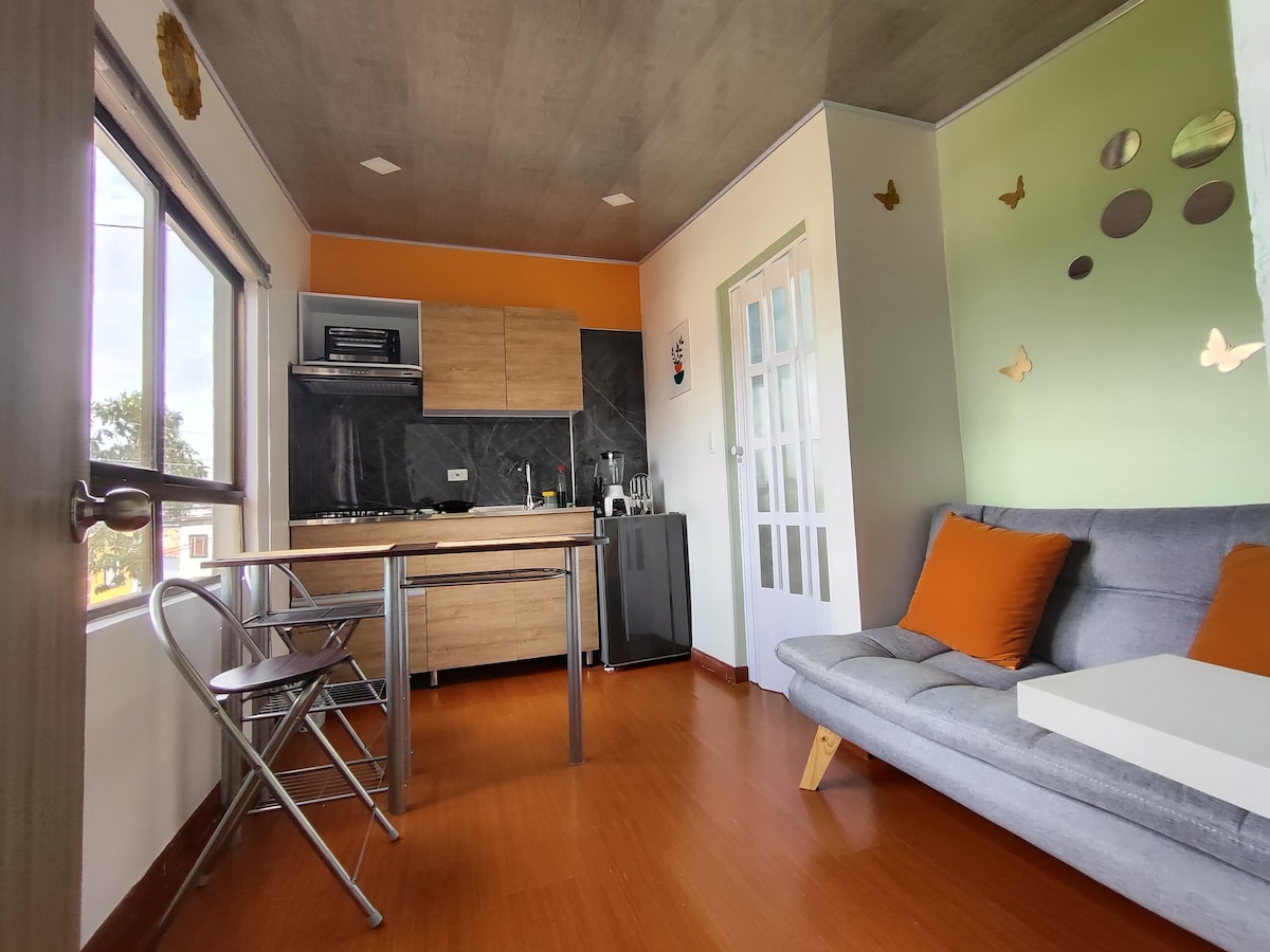 Disfruta de este aparta estudio tranquilo, cómodo y bien equipado, ideal para que tengas una buena estadía. Ubicado a pocas cuadras del centro de la ciudad, en un lugar bastante tranquilo y de fácil acceso desde los centros comerciales y universidades. Cerca de rutas de transporte público y de comercio básico (droguería, panadería, supermercado, restaurante, salón de belleza, etc) Frente al edificio tenemos una amplia zona verde, segura y tranquila. Bienvenidos!!