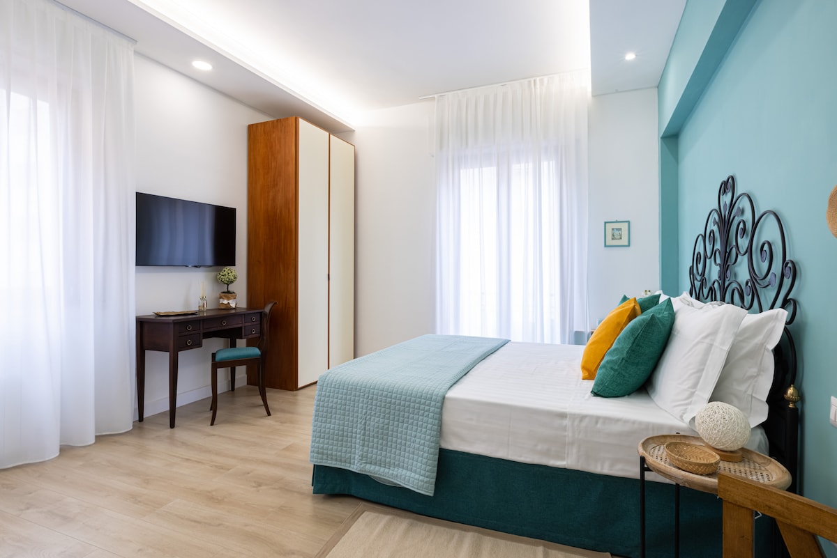 BLU MAJORELLE EVİ 2021-ci ilin avqust ayında təmir edilmiş zərif və qonaqpərvər mənzildir. Birbaşa Sorrentonun əsas küçəsinə və əsas meydandan (Piazza Tasso) bir neçə metr məsafədə Sorrentonun mərkəzində yerləşən nüfuzlu tarixi binanın ikinci mərtəbəsində yerləşir və maksimum 4 nəfər yerləşə bilər. Mənzil kondisioner / istilik sistemi və İnternet bağlantısı ilə təchiz olunub.