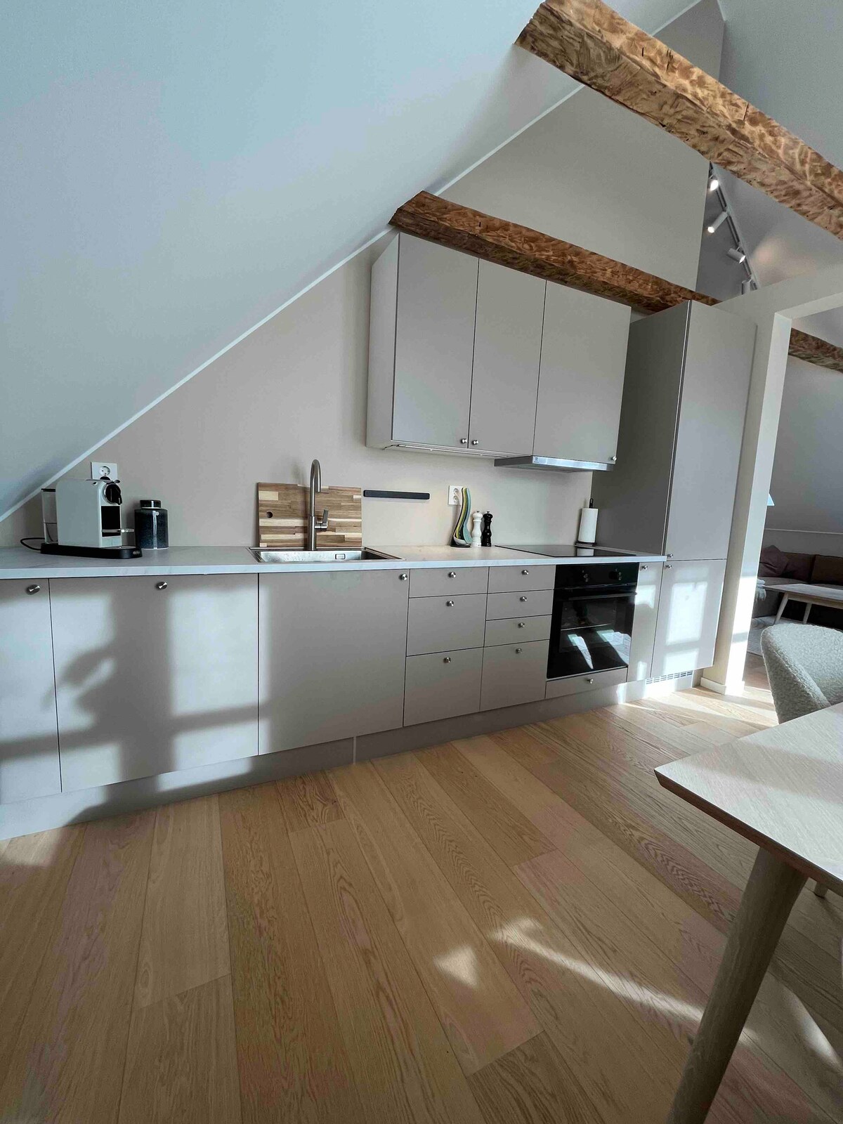 Bergen mərkəzinə yaxın, Bryggenə və üzmək üçün okeana qısa məsafədə yerləşən mərkəzi və yeni təmirdən çıxmış dupleks mənzil. Mənzildə iki yataq otağı, iki hamam otağı, geniş və tam təchiz olunmuş mətbəx və fyord mənzərəli gözəl loft qonaq otağı olan yüksək standart var. Əsas yataq otağı qapalı, şüşə divarı və sürgülü qapısı var. İkinci hamam otağında gözəl mənzərəli vanna var. Hər iki yataq otağında yüksək komfortlu çarpayılar var. Siqaret çəkmək üçün kiçik balkon hamam otağından əldə edilə bilər.