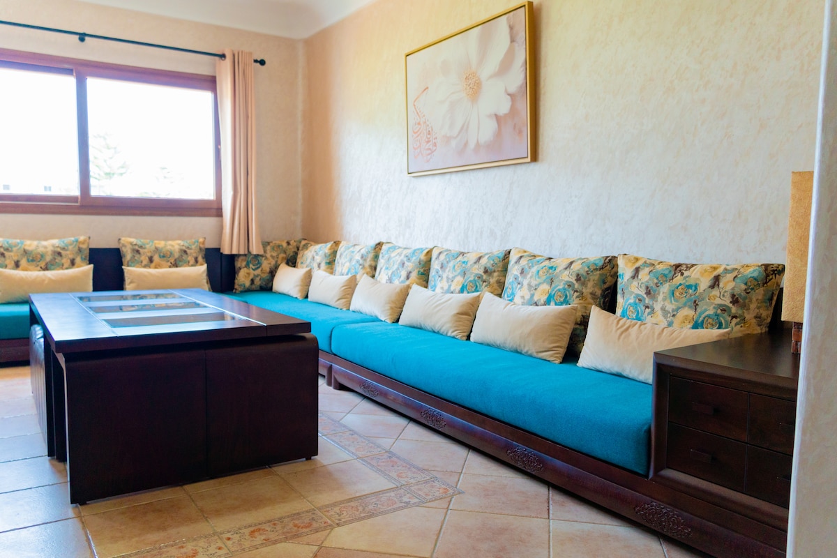 A big beautiful beach condo with a breathtaking view of the sea and swimming pool, part of Marina Beach Residences, a very select beach complex with private beach, 4 swimming pools and next to Smir Marina . My place can contain 6 people. Touristic beach complex has nearby all amenities walking distance, super markets, restaurants and coffee shops. Cities of Tetouan, Ceuta and Mdiq are few miles away. Exceptional location, Exceptional residences, Exceptional place to spend beach holidays.