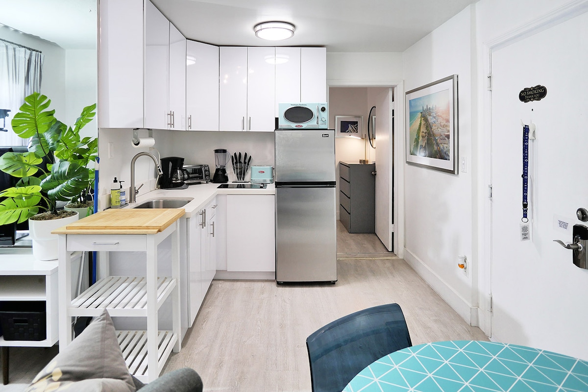 Tarixi Kollins Park Ərazisində yerləşən Gözəl Bir yataq otaqlı mənzil. Bu mənzil tamamilə yenidən qurulub və təkmilləşdirilib və mərkəzdə Mayami-Biçin sakit və yaşayış yerində yerləşir. Sizə lazım ola biləcək hər şeylə zövqlə dizayn edilmiş və rahat şəkildə yığılmışdır. Citibike stansiyası binanın qarşısında rahat yerləşir. Konqres Mərkəzi Küçədə, Çimərliyə isə qısa məsafədədir. 24/7 açıq olan bir çox Restoran, Mağaza və apteklərə piyada məsafə.