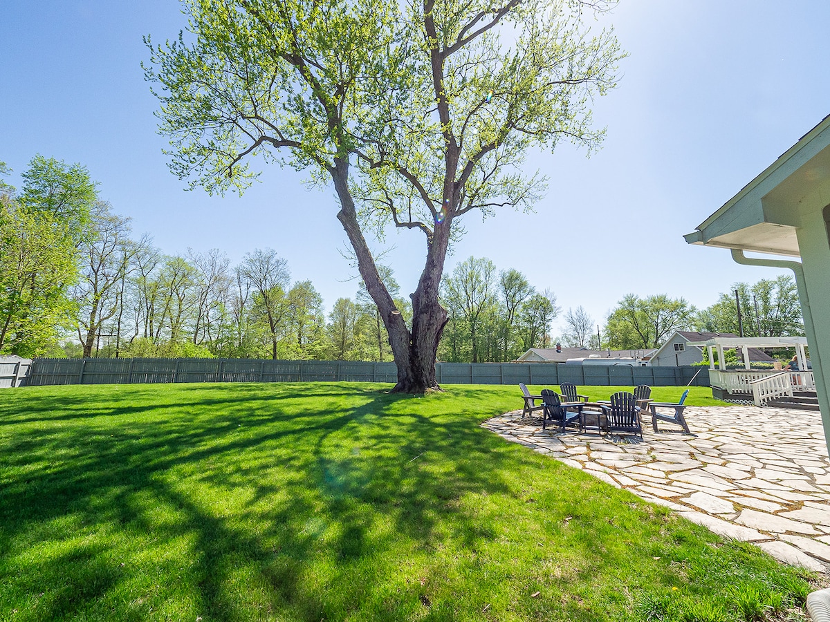 Highlights: ✔ Designer rehab in 2022 ✔ Sleeps 8 ✔ Outdoor firepit ✔ Relaxing back porch ✔ 5 min walk to Journeyman ✔ Easy 5-10 min walk to Three Oaks dining + shopping ✔ 8 min to wine tastings ✔ 10 min to New Buffalo, Union Pier, Sawyer ✔ 12 min to beach ✔ Gas BBQ grill ✔ Smart TVs & board games ✔ King bed in main bedroom ✔ Fabulous front foyer for wedding photos ✔ EV charger ✔ Luxury custom-designed home ✔ 3 vehicle parking ✔ Computer workstation ✔ High speed wifi ✔ Fully stocked