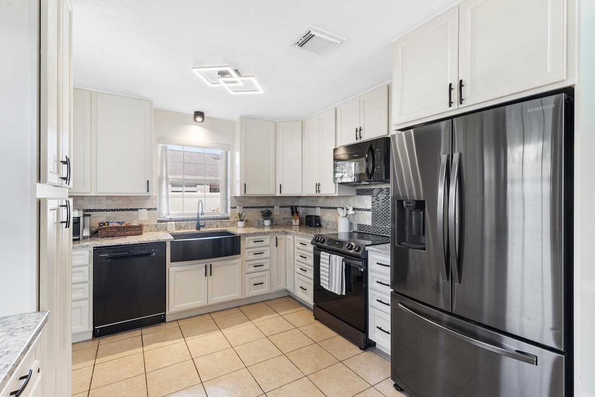 IMG Akademiyasından cəmi 2.2 mil və Sarasota hava limanından 6.5 mil məsafədə! Gözəl Kovina və Anna Mariya çimərliklərinin yaxınlığında. Bu dəbli 3 yataq otaqlı, 2 hamamlı evdə özəl hovuz, pinqpon masası və müasir rahatlıqlardan zövq alın. Tam təchiz olunmuş mətbəx, paltaryuyan maşın/quruducu, smart TV və sürətli Wi-Fi. 200 dollarlıq haqq qarşılığında bir ev heyvanına icazə verilir. Hasarlanmış geniş arxa həyətdə dincəlin və ya əylənin. Bredentonda rahatlıq, günəş və əyləncə axtaran ailələr və ya cütlüklər üçün idealdır!