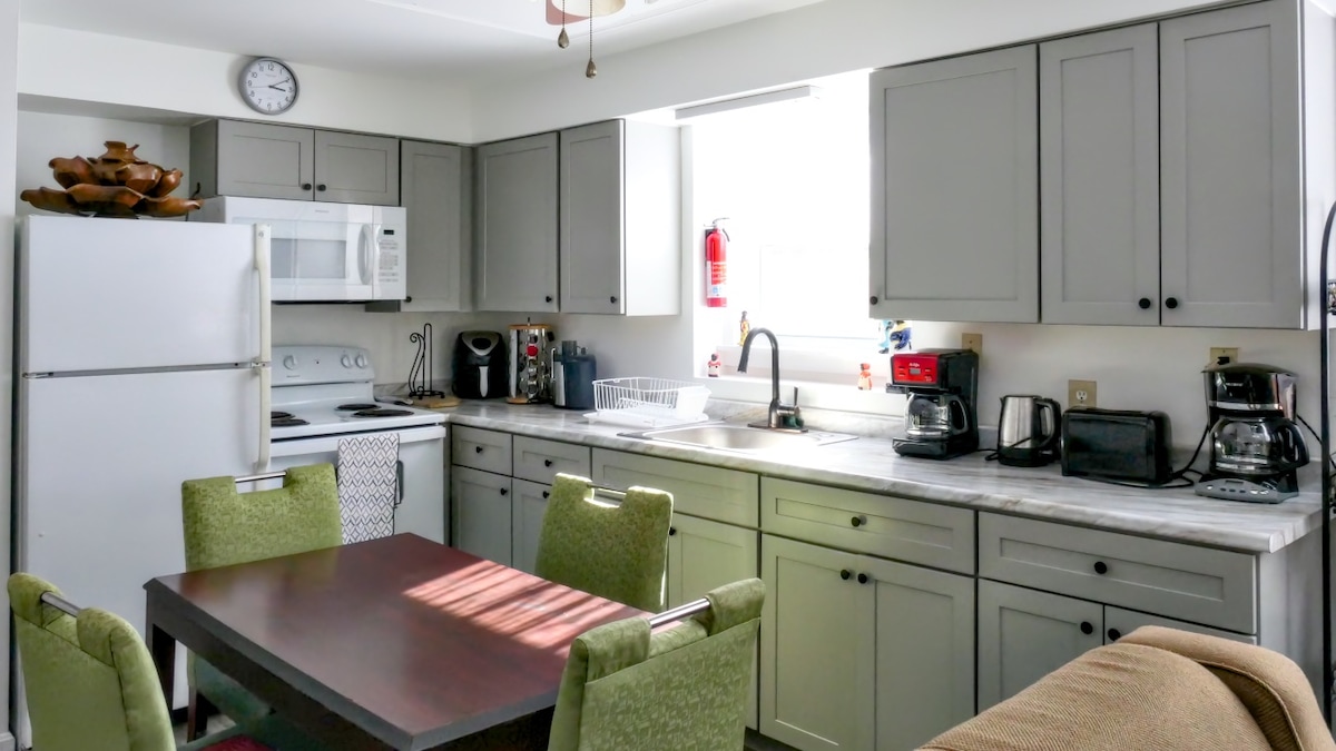 Biz Şelbörn Fermalarından 2,5 mil, Mərkəzi Börlinqton, Kilsə Küçəsindən 5 mil məsafədə olan sakit bir məhəllədə yerləşirik. Xüsusi girişi olan geniş 2 yataq otağı/2 tam hamam 1100 SF mənzil. Birinci mərtəbədə qonaq sahəsi, qaz aralığı/sobası olan tam mətbəx, soyuducu, səhər yeməyi barı, böyük ölçülü çarpayısı olan yataq otağı və tam vanna var. İkinci mərtəbədə 150-179 sm ölçülü çarpayısı olan yataq otağı və tam vanna var. Mənzil AirBnb daxilində kilidlənmiş örtülü dəhliz vasitəsilə evimizə birləşdirilib.