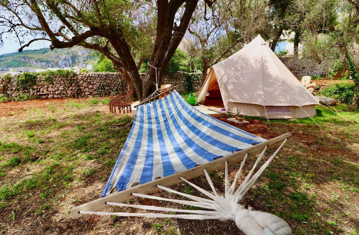 Escape from routine and reconnect with nature in this unique trend lodge - a glamping tent nestled amongst dozens of olive trees in the heart of Puglia. We are the most unique glamping site in Puglia! But what does glamping mean? Glamping is where nature meets luxury, it combines the words camping and glamour. Chic and eco-friendly, our glamping tent guarantees the contact with nature with all the comforts of home: private bathroom, fully equipped kitchen, Tv, air conditioning and private pool.