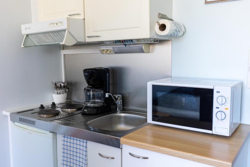 In this cozy studio you’ll find a convenient kitchenette that is equipped with a small stove-top, refrigerator, dishwasher, combination of microwave and oven, coffee machine, water kettle and tableware. For comfort, there is a stylish private bathroom and shower as well as a hairdryer. Relaxing nights are provided for by two single beds. There is a complimentary Wi-Fi connection as well as bed linen and towels.