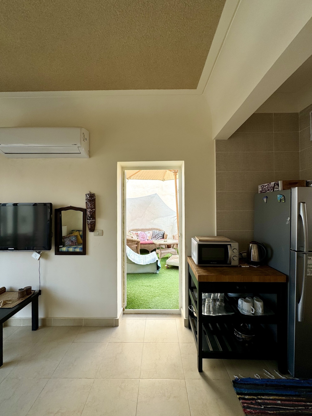 Assalanın mərkəzindəki xüsusi dinc studiyamızda və orijinal beduin məhəlləsində (Solaris Dahab və Beit Theresea-nın arxasında) dənizə 2 dəq, Assalah bazarlarına isə 1 dəq-dən az məsafədə dincəlin. Rahat şimalda, çöldə oturma yerində dincələrkən dəniz qırağından zövq ala bilərsiniz. Bir qədər iş görmək istədikdə güclü Wi-Fi (öz ruterimiz paylaşılan deyil, yerindədir ) var.