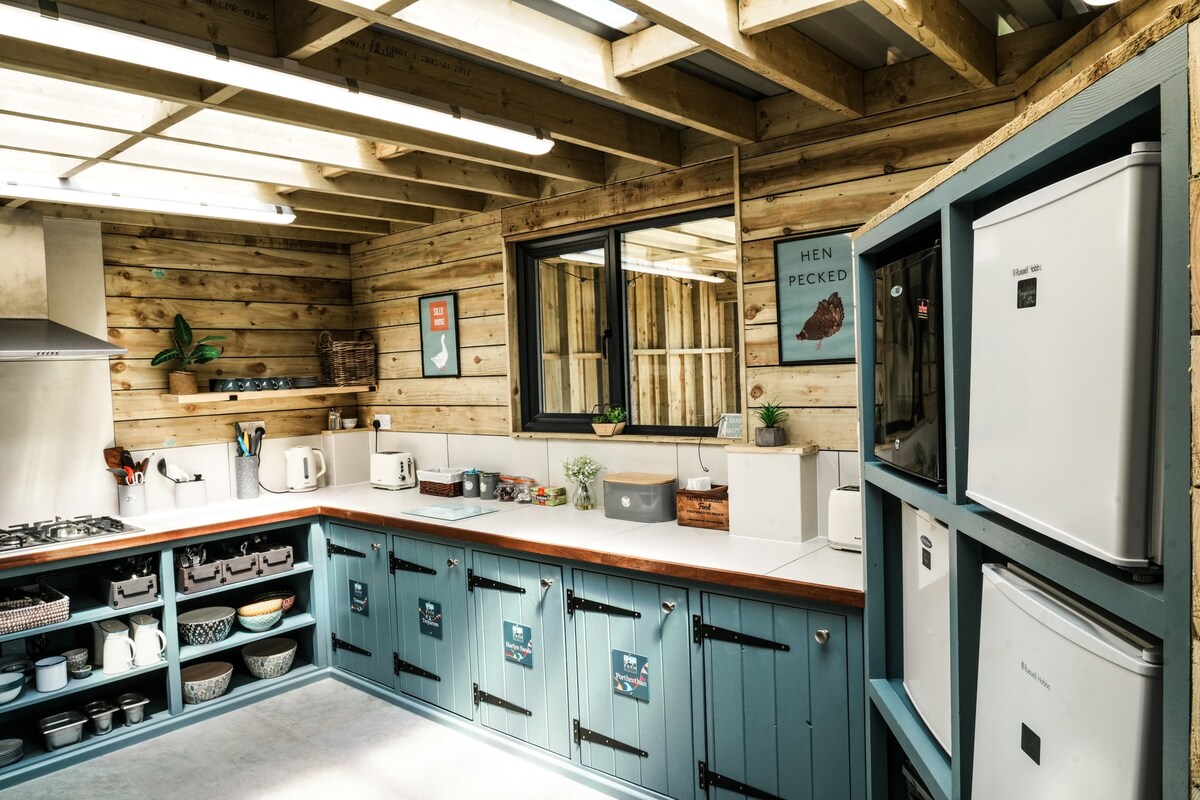 With this luxury camp offering, we have the cosy Bell Tent by the stream. Boasting a 5-metre diameter and large undercover camp kitchen facilities, this pitch comes fully equipped for a great trip! - Wood burner - Bedding - Full camp kitchen - Access to fire pit & woodland, - Phone Charging - Communal Shower Rooms - Communal wash/up kitchen with electric kettle , complimentary hot drinks , access to fridge freezer - free Onsite Parking