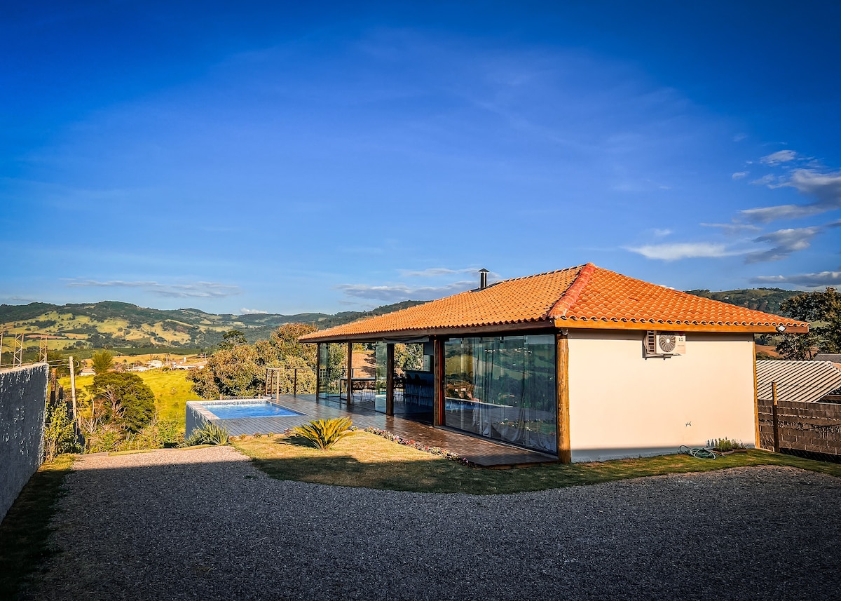 Yeni tikilmiş ev, müasir arxitektura, havalı, parlaq, işıqlı mühit, şüşə qonaq otağı təbiətlə ətrafa ümumi inteqrasiya yaradır və dağın, dərə və günbatım mənzərəsindən zövq almağı mümkün edir, rahatlıq ab-havasını, gözəl mənzərəsi olan qurman ərazisini təmin edir. Düzgün və rahat fəaliyyət üçün bütün imkanlar təklif edən ev. İnhotimdən 31 km məsafədə bir çox təhlükəsizlik, rahatlıq və təbiət qoynunda Kondominium Retiro do Chalet.