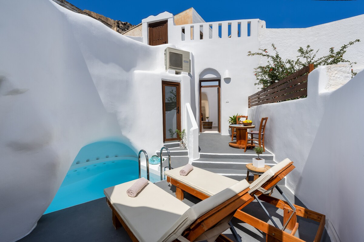 Bu dəbli mağara nömrəsində 1 yataq otağı, tam təchiz olunmuş mətbəxi olan qonaq sahəsi və üçüncü qonağı rahat yerləşdirən divan var. Ada günəşi altında dincəlmək və ya sakit axşam havasında ulduzlara baxmaq üçün açıq havada cakuzi və oturma yerinin gözlədiyi ayrıca terrasınıza doğru addımlayın. Ənənəvi zəriflik və müasir komfortların qarışığı olan Feredini Süitası sizi Egey yaşayışının mahiyyətini yavaşlatmağa və yaddaşda saxlamağa dəvət edir.