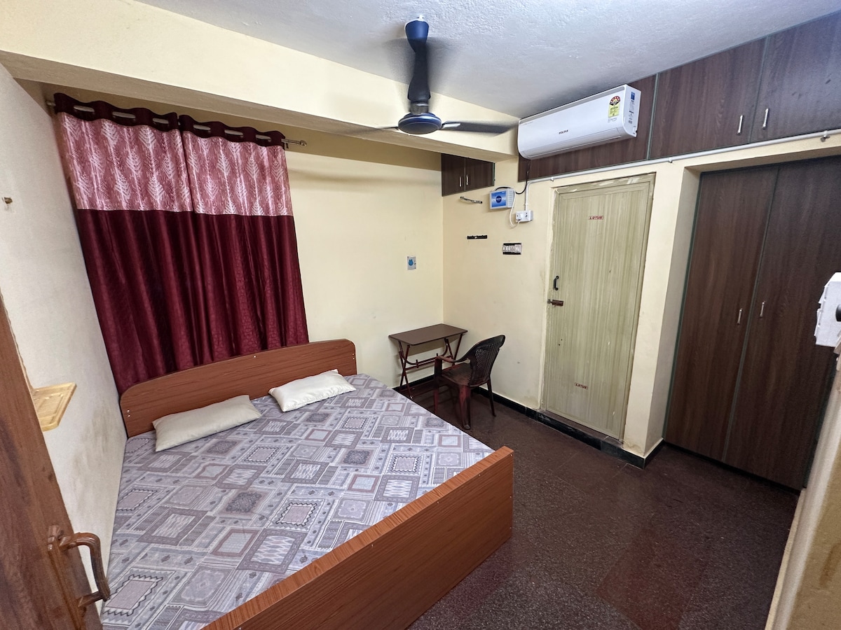 Kondisionerli yataq otağı olan bu rahat qonaqlama yeri ilə dincəlin - Müstəqil - Uzunmüddətli Qonaqlamalar üçün Xüsusi Qiymətlər- 1 ay ərzində 30%, 1 həftə üçün isə 10% endirim - ətraflı məlumat üçün bizimlə əlaqə saxlayın - ELCOT IT Park, Apollon Xəstəxanası, HCL, Honeywell İT şirkətləri, mağazalar, Otellər və restoranlara yaxın - Ailələr üçün səs-küylü şəhər mərkəzindən uzaqda, təhlükəsiz, səliqəli yer - Uzunmüddətli qonaqlama üzrə işləyən peşəkarlar üçün uyğundur - Şəraitli İkinəfərlik çarpayı, Salon, Mətbəx və hamam otağı, Müasir şkaf, Elektrikli Hotplate, isti su.