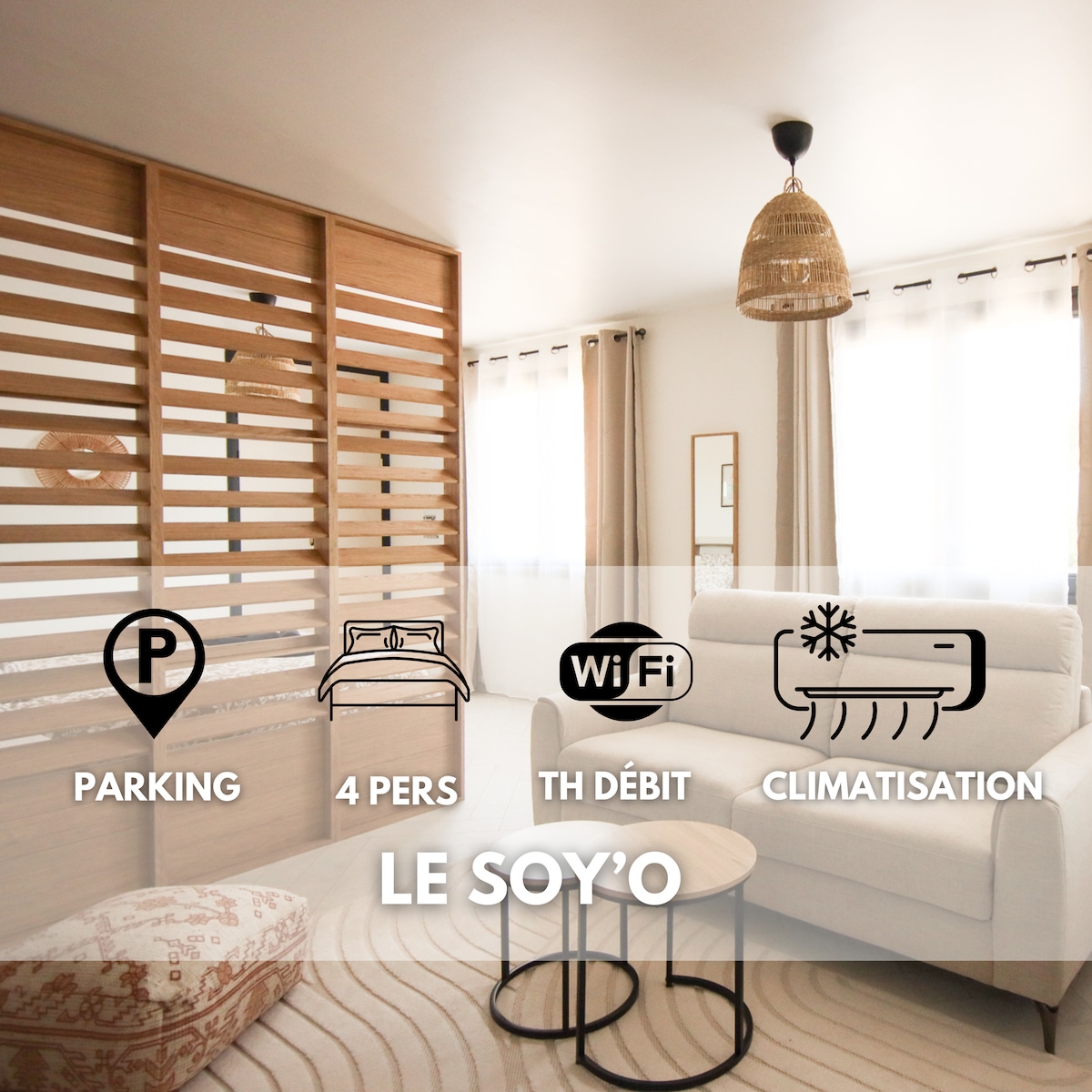 Soya4 nəfərə qədər insanı qəbul edə bilən 40 m2-lik mənzildir. Mənzil kondisionerlidir və xüsusi təhlükəsiz parkinqi var. Soyaux Town Hall ilə üzbəüz yerləşən mövqeyi Angoulême (10 dəq), Soyaux ticarət sahəsi (5 dəq) və ya Elsan Klinik Mərkəzinə (5 dəq) çatmaq üçün idealdır. Döşəkağılar və dəsmallar təmin edilir. Pulsuz lifli Wi-Fi. Mənzil çox sakit bir yerdə və bütün imkanlara yaxın bir yerdə yerləşir.