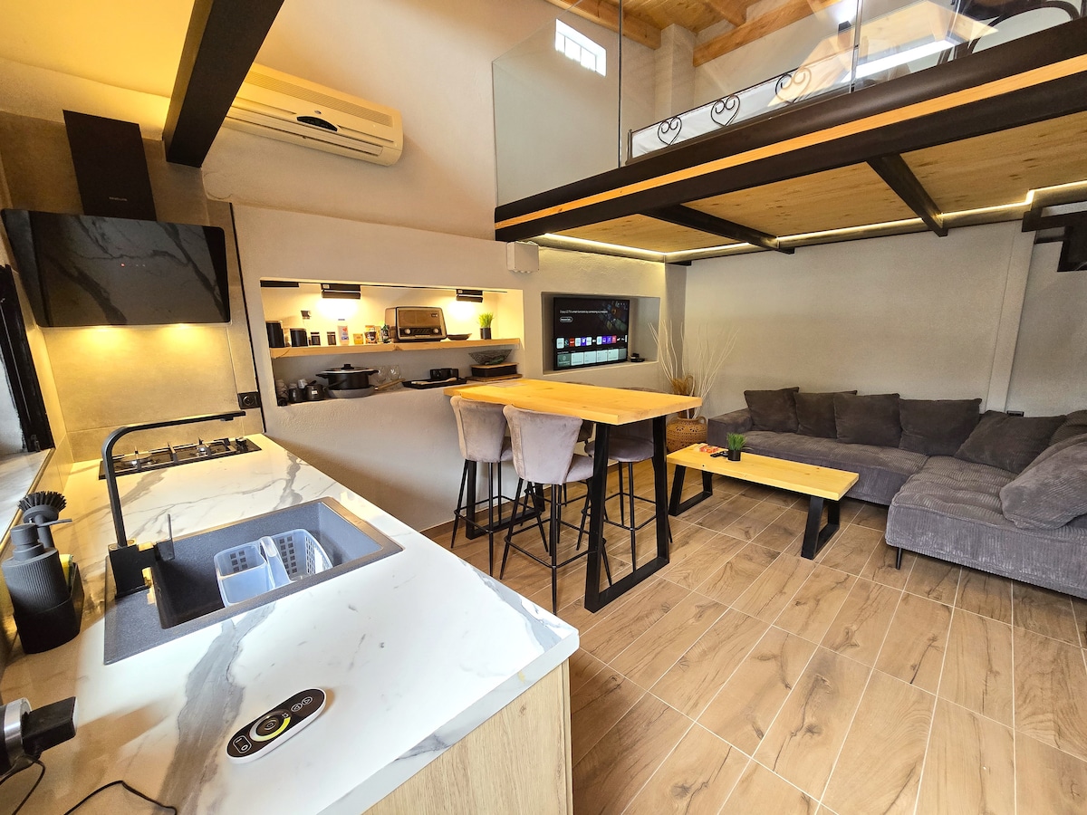 Gözəl bağçası olan tam yeni, geniş loft (78 m²). Öz dizaynımız olan əl işi mebel və işıqlandırma. Yaddaş köpüyü döşəyi olan çox rahat ikiyataqlı çarpayı sizi gözləyir. Loft şəhərin mərkəzində yerləşir və hava limanından və bir çox ticarət mərkəzindən 10 dəqiqədən az məsafədədir. Şəhər meydanına 3 dəqiqəlik piyada məsafədə və Thermi bəndinə 10 dəqiqəlik məsafədəsiniz. Xalkidikiyə 30 dəqiqəyə çatırsınız. 200 mbs internet bağlantısı mövcuddur.
