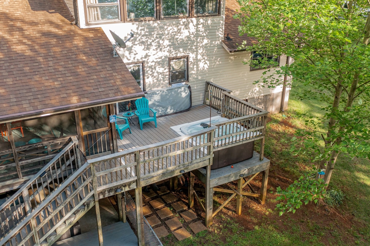 We have set the stage for your family to have a peaceful getaway in our beautiful, cozy home! A modern vibe with a warm, country feel. This sprawling, open floor plan has 4 bedrooms, large livingroom, large stocked kitchen with dining area, 2 full baths, laundry room, screen porch, outdoor hot tub, and newly updated game room in the garage. Edison lights above pool We have opened our home for families to enjoy. Events allowed upon approval (special pricing) Pool is open April 1-October 12