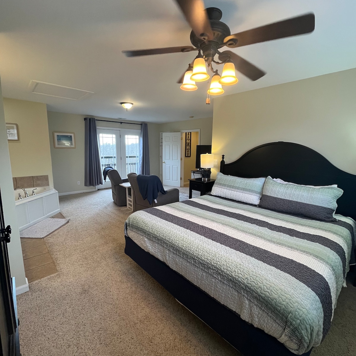 Nestled in the heart of the Bourbon Trail, The Commonwealth is a spacious home that feels luxurious, yet still welcoming. When you enter the front doors, you will be greeted by a grand double staircase and plentiful gathering space. Each of the five bedrooms has its own dedicated full bathroom, making this perfect for a large group or couples' getaway. Situated near Louisville and Bardstown, you have quick access to over 20 distilleries, as well as quaint downtown areas and Taylorsville Lake.