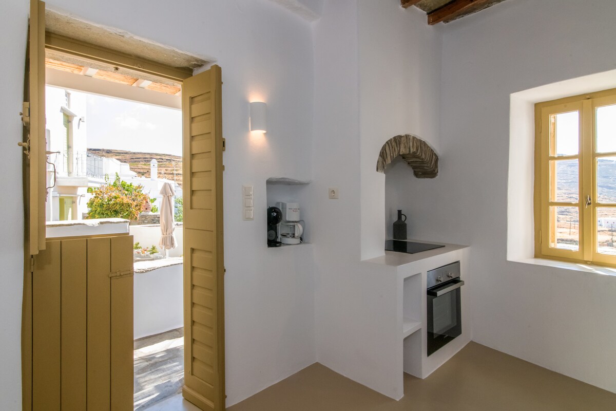 Ένας ιδιαίτερος χώρος φιλοξενίας με κήπο και πετρόχτιστο καθιστικό εξωτερικό χώρο, αναμένει να σας φιλοξενήσει εντός του παραδοσιακού οικισμού του Τριαντάρου. Διαθέτει εξαιρετικό περιβάλλοντα χώρο συνδυάζοντας την απόλυτη χαλάρωση και γαλήνη που προσφέρει η θέα του φυσικού Τηνιακού τοπίου αλλά και η θέα της Αιγαιοπελαγίτικης θάλασσας. Διαθέτει ένα διπλό κρεββάτι με αποθηκευτικούς χώρους, χώρο γραφείου-εργασίας, πλήρης κουζίνα φούρνο, μπάνιο, bbq και μία υπέροχη απάνεμη βεράντα.