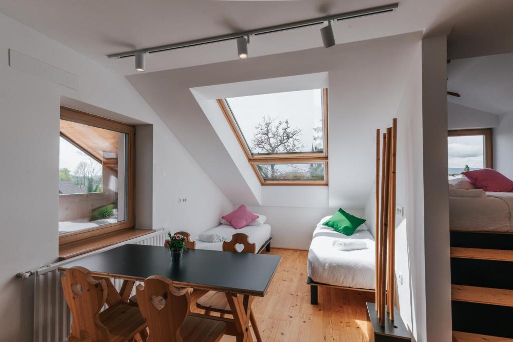 RNO NÖMRƏSİ: 100335 (2) Sloveniyanın mərkəzində yerləşən Stişka Vas adlı sakin dağ kəndində iki ayrıca mənzilli evimizi tapa bilərsiniz. Bu, Lyublyana hava limanından cəmi 15 dəqiqəlik məsafədə fantastik dərəcədə əlçatan bir yerdir və Sloveniyanı araşdırmaq üçün çox yaxşı yerləşib - mərkəzi Lyublyana və dünyaca məşhur Bled gölü 30 dəqiqəlik sürücülük məsafəsindədir. Şəhər izdihamından uzaqlaşmaq üçün sakit və rahat bir yer axtarırsınızsa, bu yer sizin üçün mükəmməldir.