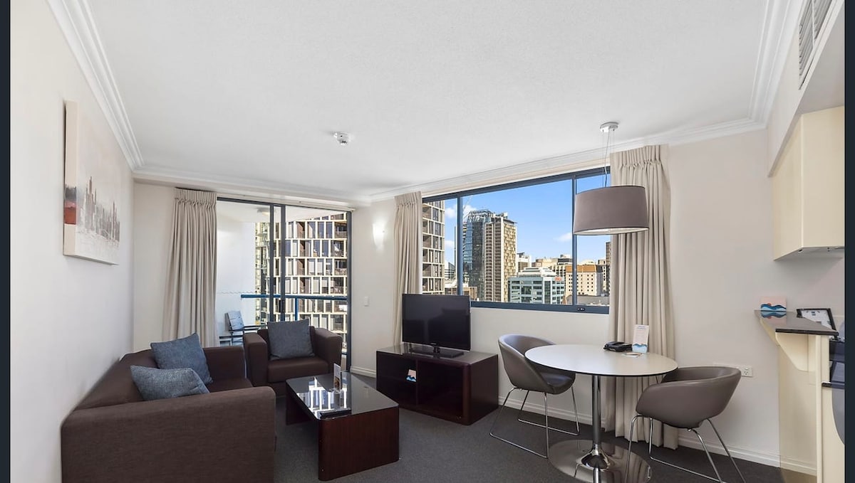 Our stunning riverview & botanic-garden view king-sized one bedroom apartment is perfectly for short term and long term stays. Situated in inner CBD, Brisbane’s SkyTower building is close to everywhere! Apt features include: -Spacious bedroom with King size bed and built in wardrobe. Fresh towels and linen provided. -Sofa bed in living area -Central air conditioning -Gas stove top with full chef’s kitchen -Hide away laundry area -Washing machine and dryer -Coffee machine -Smart TV -Free WIFI