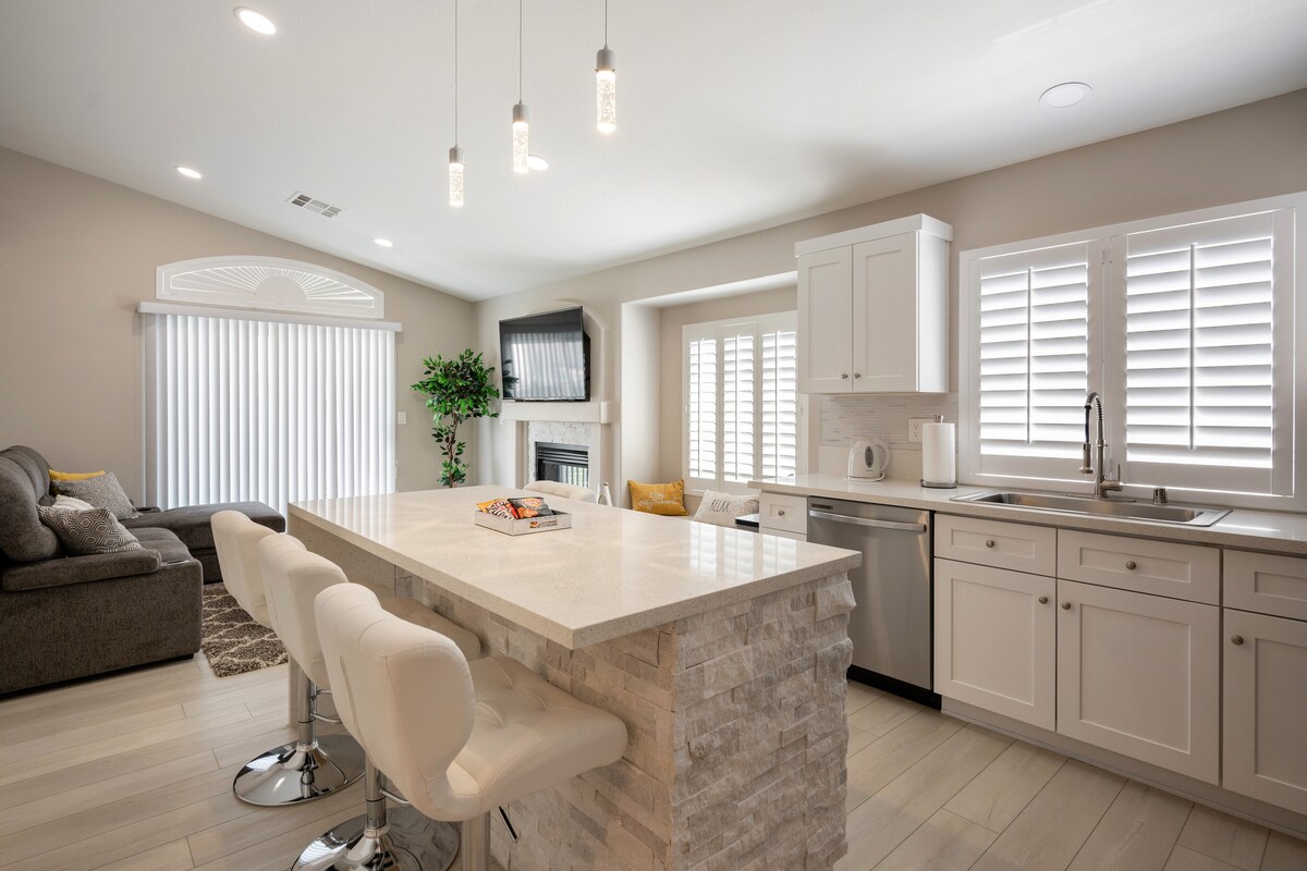 Gözoxşayan Las-Veqas Zolağından cəmi 16 dəqiqə uzaqlıqda yerləşən əsl istirahət məkanı olan cəlbedici Airbnb tətilimizə xoş gəlmisiniz. 2 spesifik yataq otağı, təravətləndirici hovuz və müasir imkanlarla evimiz komfort, üslub və rahatlığın mükəmməl qarışığını təklif edir. Airbnb strateji mövqedə yerləşir və yaxınlıqdakı müxtəlif obyekt və xidmətlərə asan giriş imkanı təmin edir. Yaxınlıqda yaxşı təchiz olunmuş idman zalı, Bütün Yeməklər Bazarı və cəld və dadlı dişləmə üçün məşhur In-N-Out tapa bilərsiniz.
