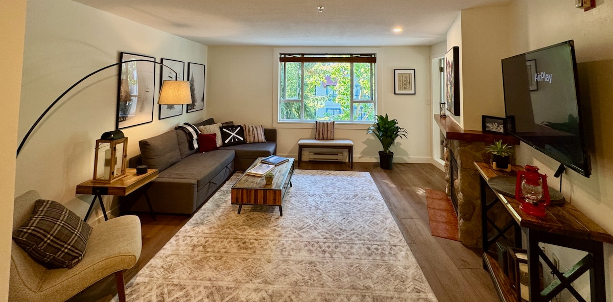 The Creekside Cozy Condo is a modern, 1- bedroom condo in Whistler’s Creekside. Recently renovated, this mountain retreat comes with a KING-size bed, heated floors, and Nespresso coffee machine. Ideally located across the street from picturesque Creekside Village and a 5-minute walk from the Creekside Gondola, this is the perfect place for couples, families, or friends looking for a mountain escape! This space is ideally suited for 2 guests but can fit up to 4 if you're very well acquainted!