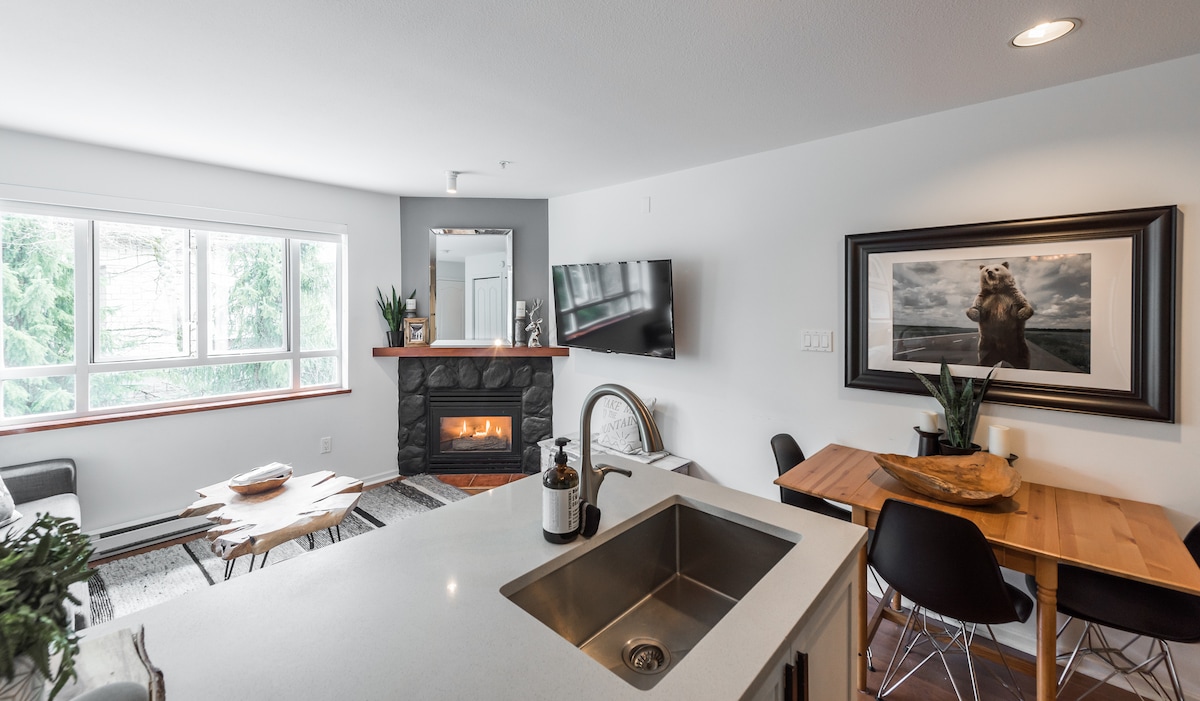 The Creekside Cozy Condo is a modern, 1- bedroom condo in Whistler’s Creekside. Recently renovated, this mountain retreat comes with a KING-size bed, heated floors, and Nespresso coffee machine. Ideally located across the street from picturesque Creekside Village and a 5-minute walk from the Creekside Gondola, this is the perfect place for couples, families, or friends looking for a mountain escape! This space is ideally suited for 2 guests but can fit up to 4 if you're very well acquainted!