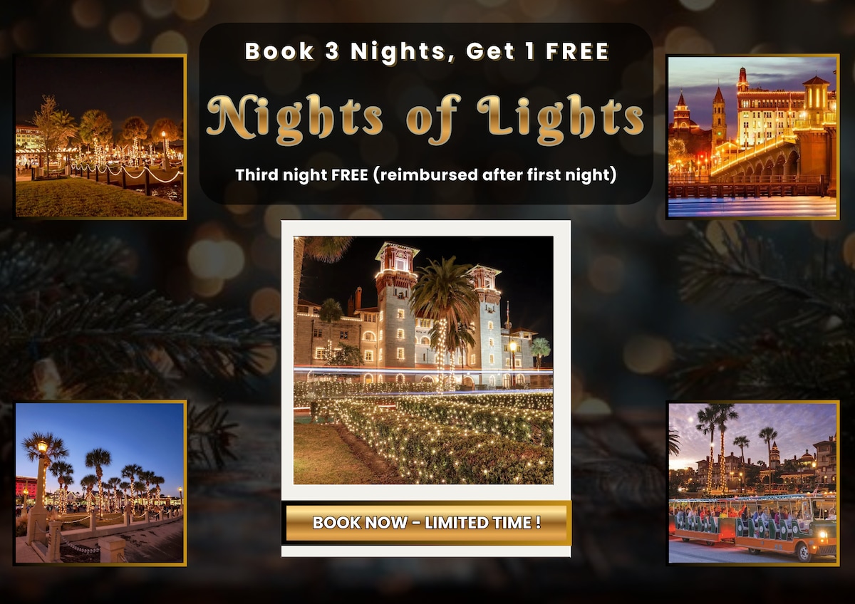 Sağ yuxarı küncdəki ürəyə klikləməklə evimi sevimlilərinizdə saxlayın. * 3 gecə bron edin, 4-cü gecəni 30% endirim əldə edin!* > Çimərlikdən 100 addım! >Okean və Hovuz Görünüşləri! >Qapalı qızdırılmış hovuz, açıq havada isidilməmiş hovuz, cakuzi! >Sauna, tennis, raketbol, fitnes mərkəzi > Sent-Avqustin şəhərinin mərkəzi 17 dəqiqəlik məsafədədir >Kabel televiziyası və yayım tətbiqləri. Sürətli Wi-Fi. >Damla qəhvə maşını >Paltaryuyan maşın + Kondominiumda quruducu >Geniş ayrıca veranda >2-3 günlük təchizat təmin edilir (TP, zibil torbaları, podşipniklər və s.)
