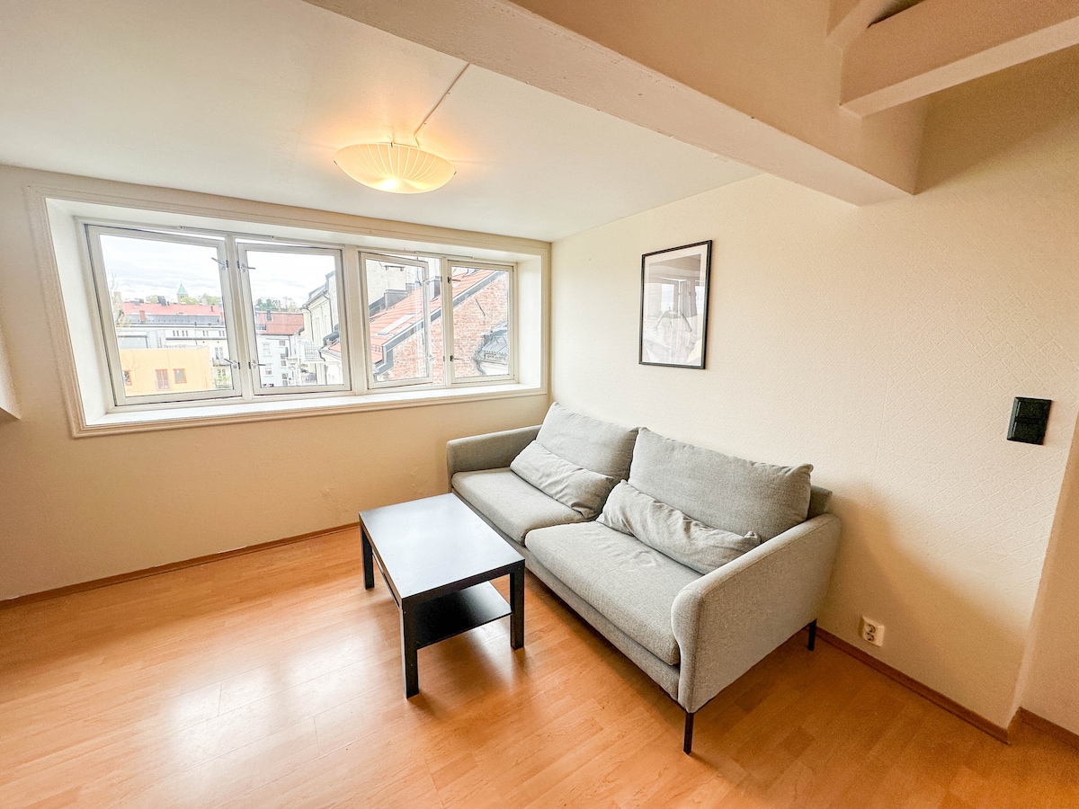 A cosy loft apartment, 40 m2, in one of the best parts of the citycenter, right in the hearth of Oslo - with the very best seawiew and sunsets right from your sofa. Short walking distanse to the Oslo sentral station, Royal Castle, Opera and harbour- area. Here you find the very best restaurants, shopping area, clubs&bars. The flat is in the seventh floor , with french balcony. Wonderful sunsets. Roof terrasse with 360 degrees view . Elevator in the building. Coffeshop in the first floor..
