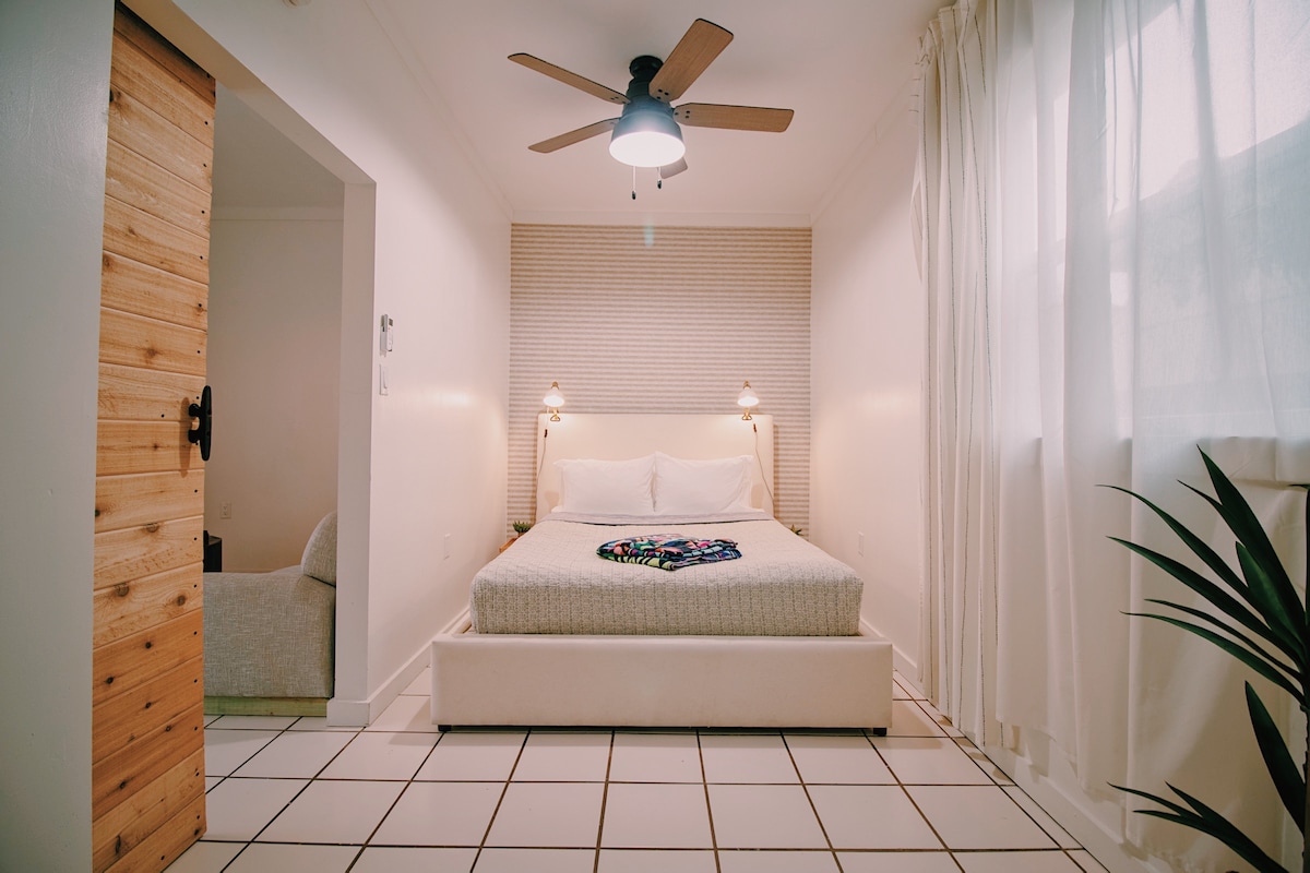 Tənha bağ casita şəhər qapılarından bir milin üç onuncu hissəsini sıxdı. Şəxsi bağ yolunu rahatlığın qapısının ağzına aparın və WIFI, pulsuz parkinq və əsas ehtiyaclarla təchiz edilmiş mətbəxə giriş əldə edin. Zen bağı gününüzdən istirahət etmək və dincəlmək üçün gözəl istirahət məkanı rolunu oynayır. Kasitada lüks döşəkağıları, masa guşəsi və hamam-tualeti olan 150-179 sm ölçülü çarpayı var. 100 yaşlı şəxsi evin ərazisində yerləşən Garden Casita-da rahatlığınızı tapın.