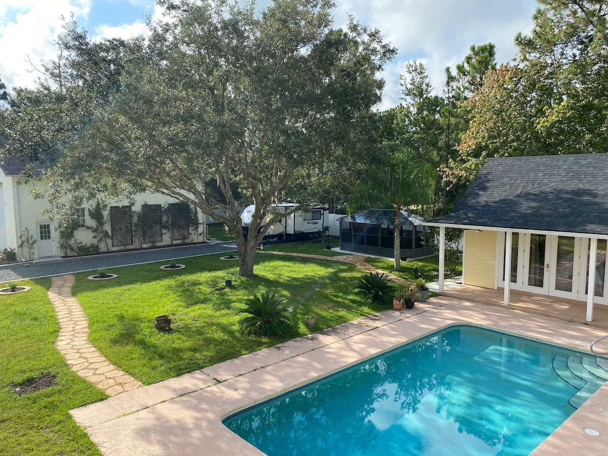 ol 'St Augui' dən 15 dəqiqə. Bu tipik Florida meşələrinin mərkəzində yerləşən və Seminole Müharibəsini görən palıdlarla yuva qurmuşuq, çünki Ft Peytondan və Osceolanın tutulduğu yerdən 2 mil uzaqlıqda yerləşir. Ev bağların yarısında yerləşir və dekorasiya ranço, sakit və qəribədir. Məqsəd bir müddət uzaqda hiss etməyinizdir. 2 çox kiçik, yaxşı davranmış və sakit itlərim var və heç vaxt pişik görməmişdim. Onların sizin kvartalınıza girişi yoxdur və ya icazə verilir.