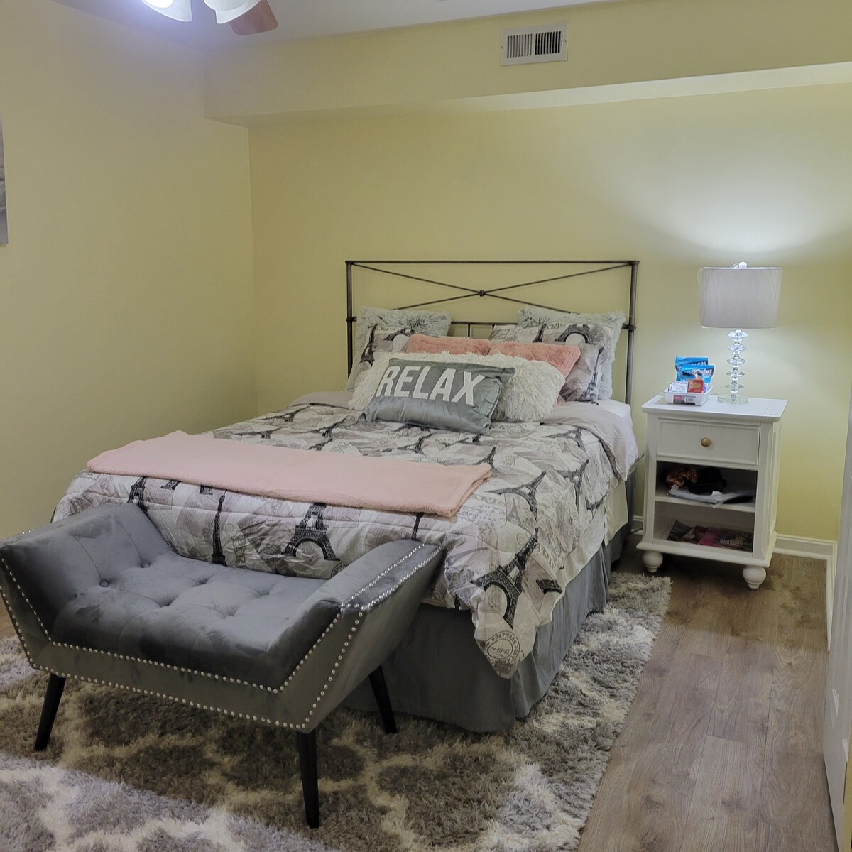 Səmimi bəzədilmiş qonaq süitamız evimizin əsas hissəsinə birləşdirilib, lakin öz xüsusi girişi ilə tam ayrıdır. Nömrəyə geniş yataq otağı, böyük hamam otağı və televizor, mini-soyuducu/dondurucu, mikrodalğalı soba və Keurig olan ayrıca qonaq/yataq sahəsi daxildir. İstəyə uyğun olaraq (FOC) qonşu camaşırxana otağı istifadəniz üçün mövcuddur. Kiçik göyərtə, veranda və tam hasarlanmış həyət eksklüziv istifadənizə daxildir. Evimizin düz önündən küçədə parkinq mövcuddur.