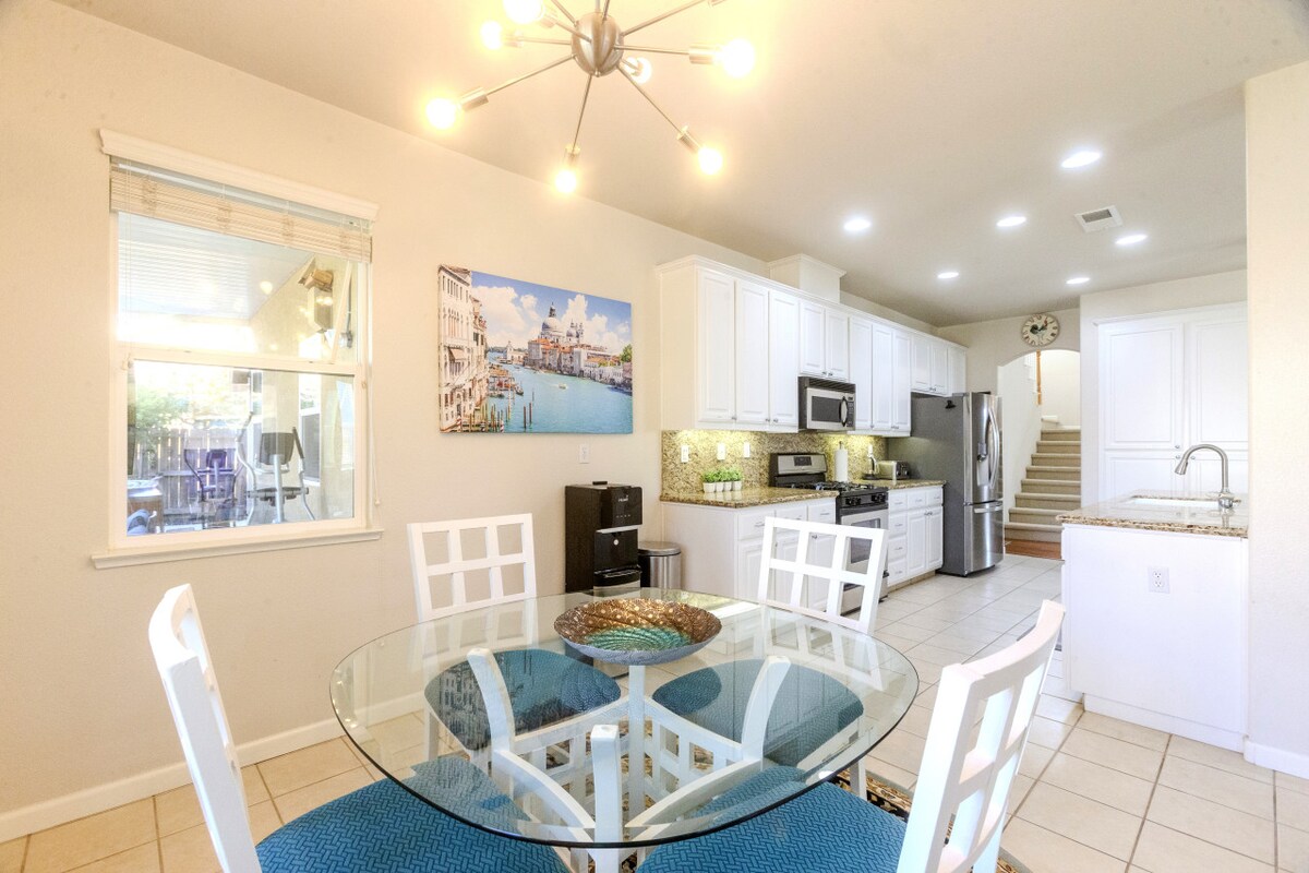 🏡 The ultimate group getaway! Spacious 2-story home sleeps 13 with private jacuzzi, pool table, gym, 2 outdoor patios with smart TVs, and master suite fireplace. Just 1.5 hrs from Yosemite! ☕ Full Kitchen • Fast WiFi • Free Parking • Self Check-In Perfect for: large families, celebrations, Yosemite groups, corporate retreats, sports tournament families. Weekly & monthly discounts!