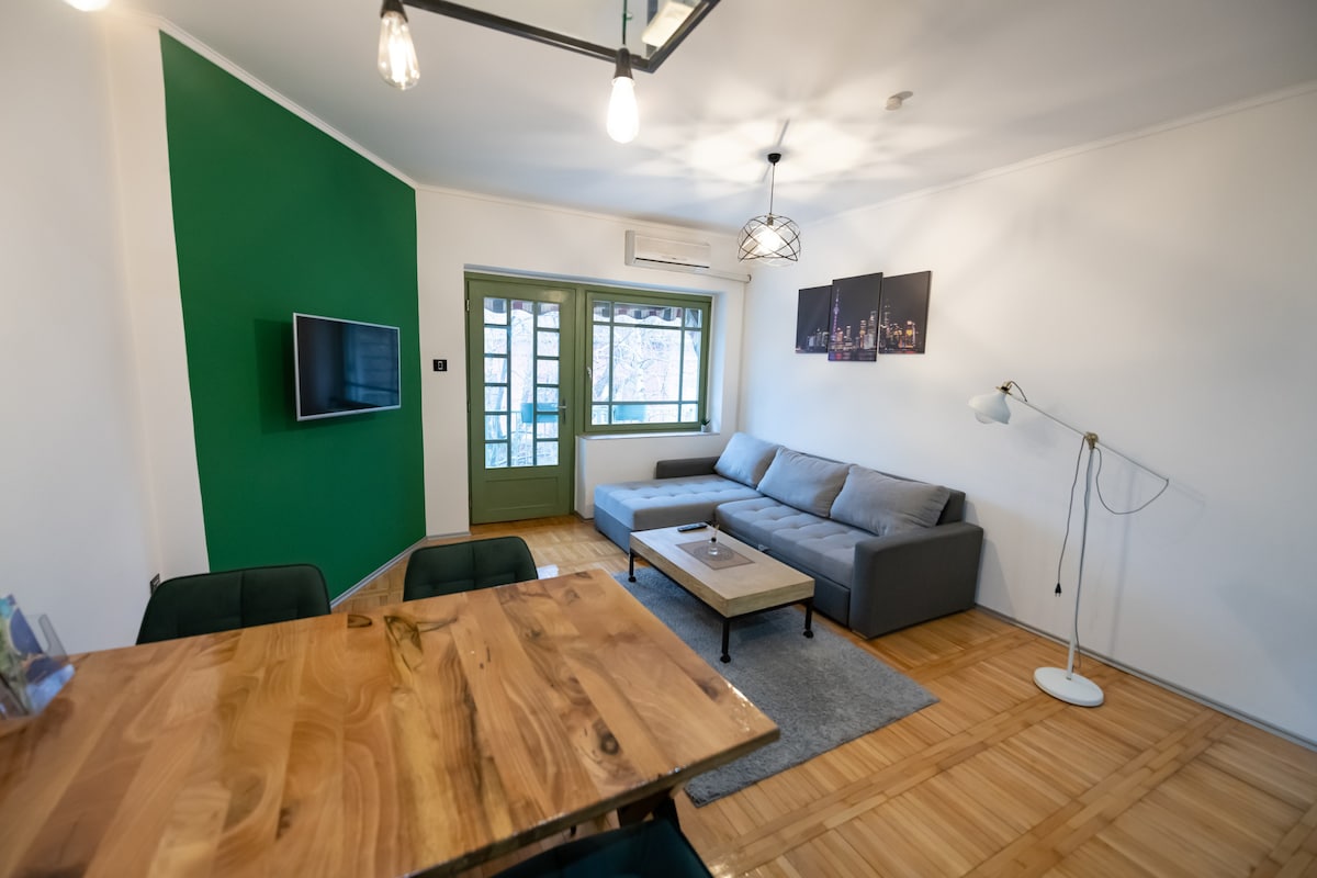 Welcome to my quiet, newly renovated apartment situated only 100 metres from the bus station and 500 metres from the city centre. It is convenient for remote work since the speed Of the optic internet is 400 Mbps. It is cosy, bright and thoughtfully decorated . The apartment is equipped with all the necessary household appliances to make your stay nice and memorable. The apartment is with balcony on the fifth floor without an elevator. Languages spoken : English, Serbian, Magyar