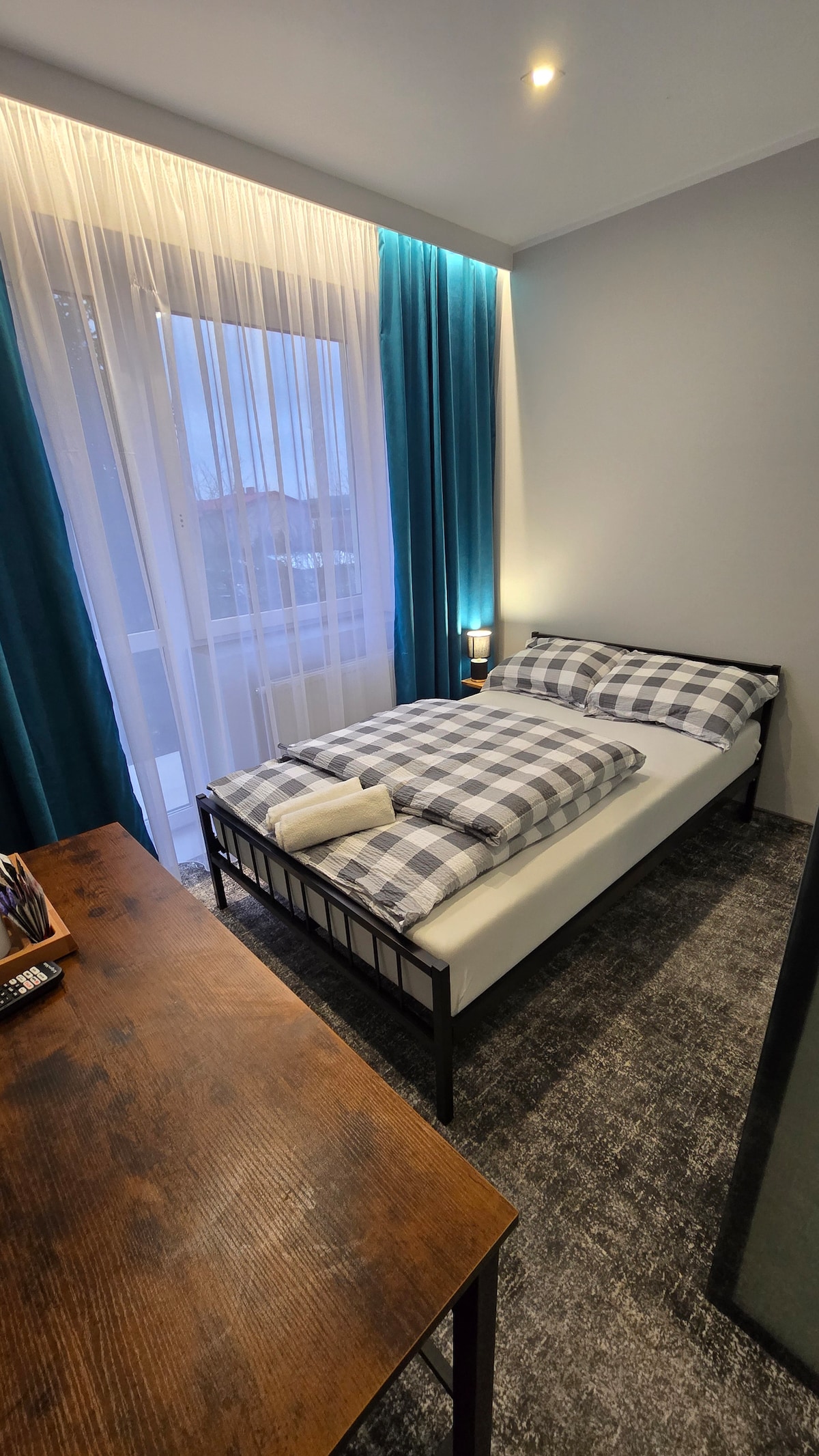 Hasarlanmış yaşayış yerində lifti olan blokda 2-ci mərtəbədə yerləşən müasir və geniş mənzil. Tam təchiz olunmuş mətbəxə qoşulmuş qonaq otağı, çarpayısı olan rahat yataq otağı və zərif hamam otağından ibarətdir. Mənzilin parka baxan balkonu var, səhər qəhvəsi üçün mükəmməldir. Məkanın funksional tərtibatı sayəsində o, həm daha qısa, həm də daha uzunmüddətli qonaqlamalar üçün mükəmməldir. Əlavə üstünlük qarajda rahatlıq və təhlükəsizliyi təmin edən xüsusi parkinq yeridir.