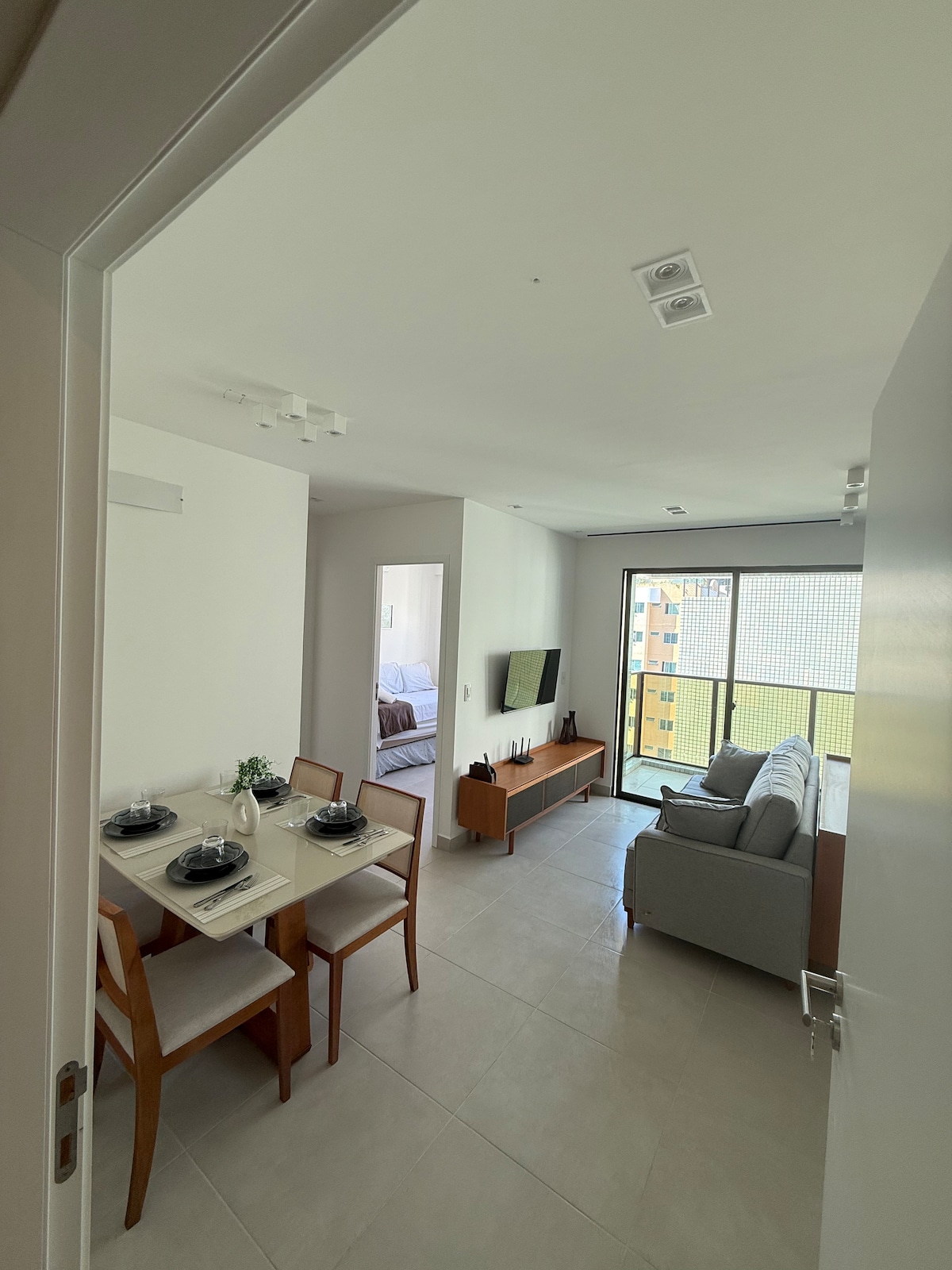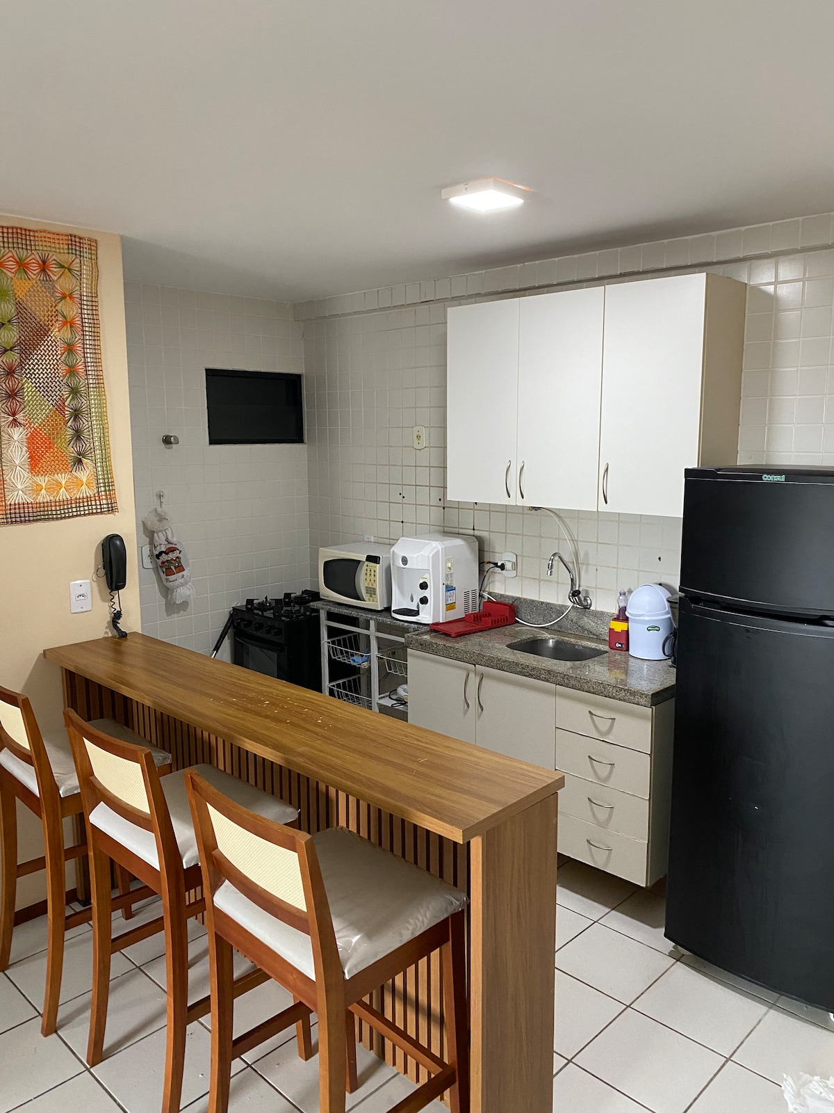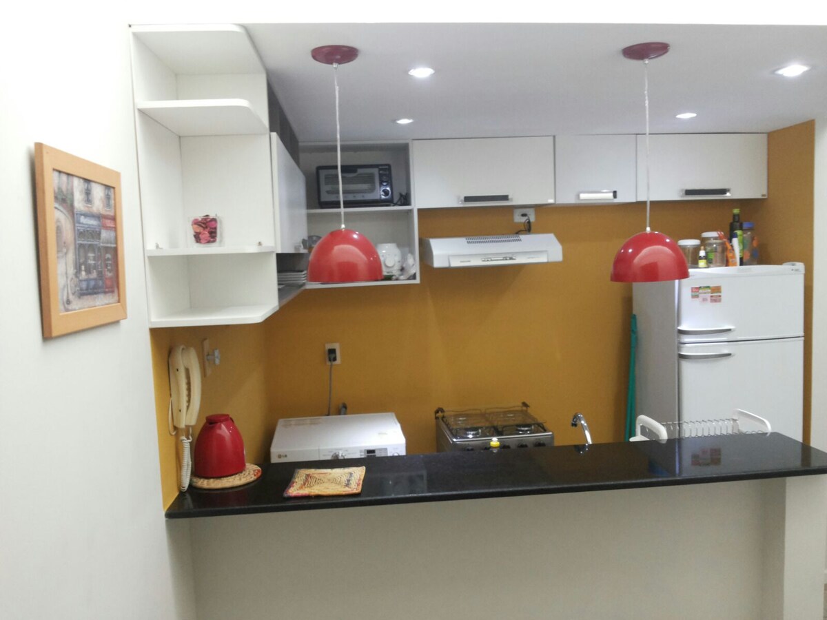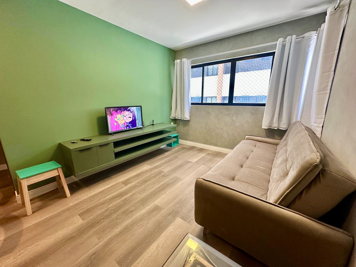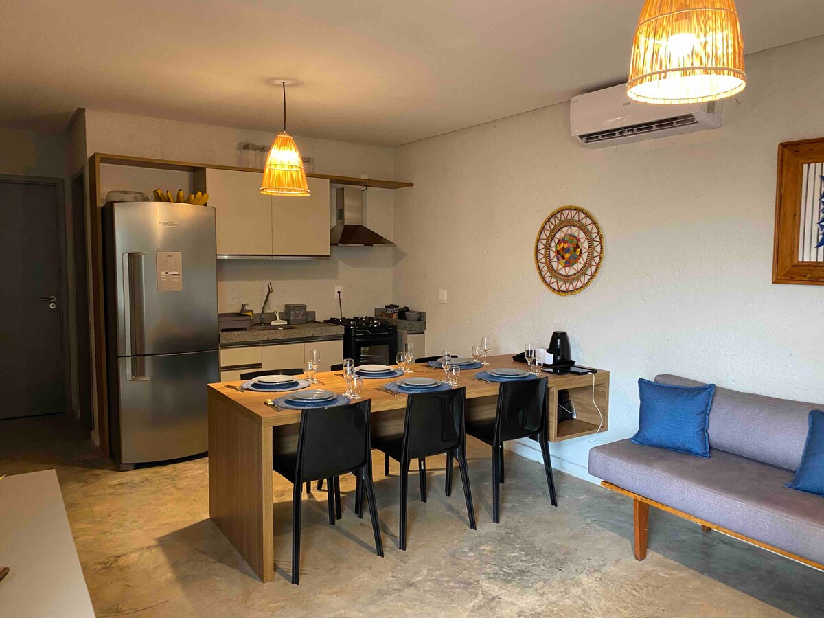 Çimərlikdə bina Jatiuca Yeni mebeli olan rahat mənzil, İkinəfərlik yataq otağında kondisioneri olan təmiz mühit, tam Amerika mətbəxi, televizorlu qonaq otağı və xüsusi fiber optik internet, paltaryuyan və quruducu, tam bəzədilmiş.
