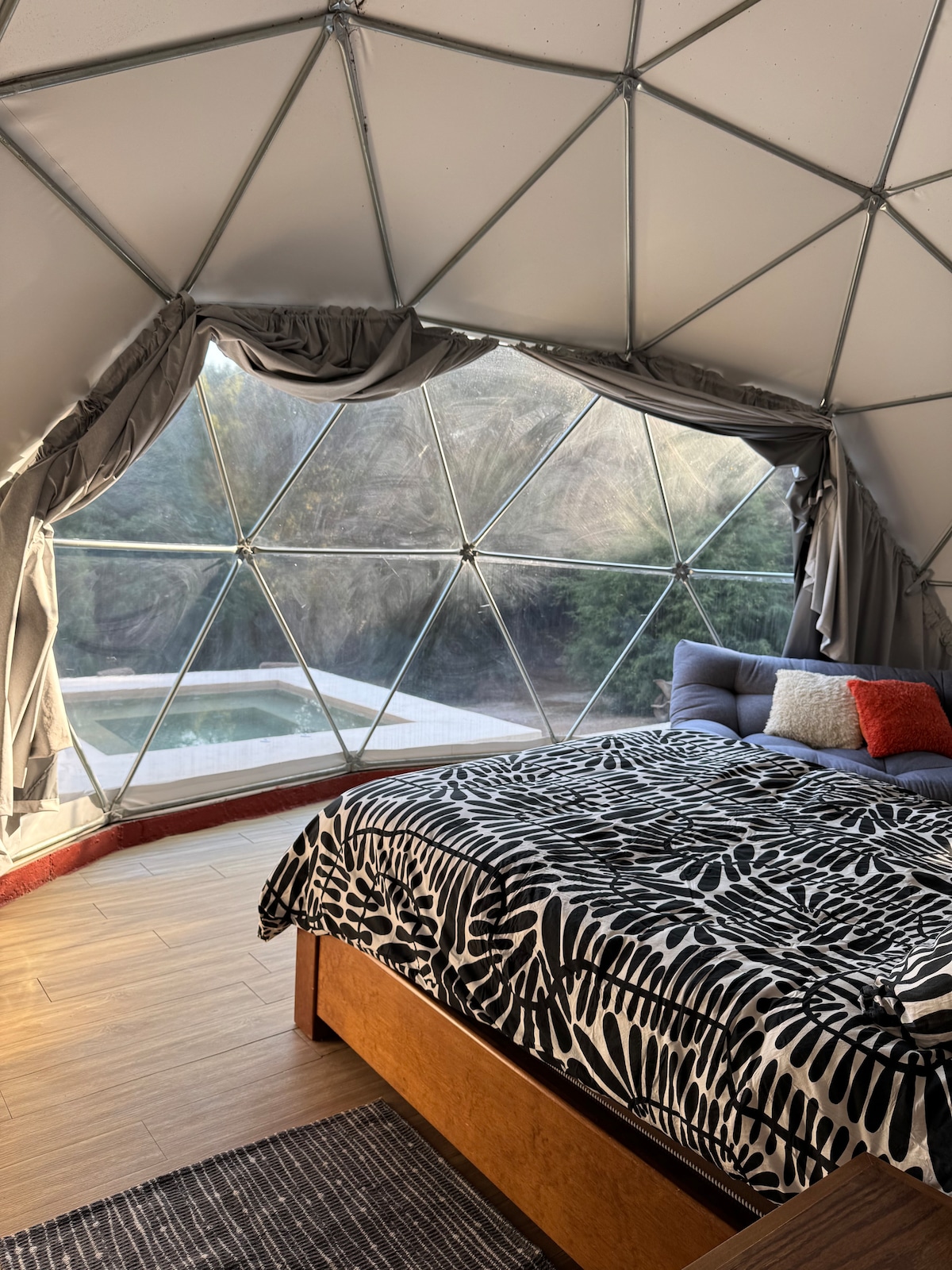 Teotihuacanda bənzərsiz təcrübəyə xoş gəlmisiniz! Sizi Teotihuacan piramidalarının əsrarəngiz mənzərəsi ilə gecəni təbiətin ortasında keçirməyə dəvət edirik. Ağaclar və bitkilərlə əhatə olunmuş gözəl təbii məkanda yerləşən geodezik günbəz gündəlik həyatın stresindən ayrılmaq və təbiətin sakitliyi və rahatlığından zövq almaq üçün mükəmməl bir yerdir.