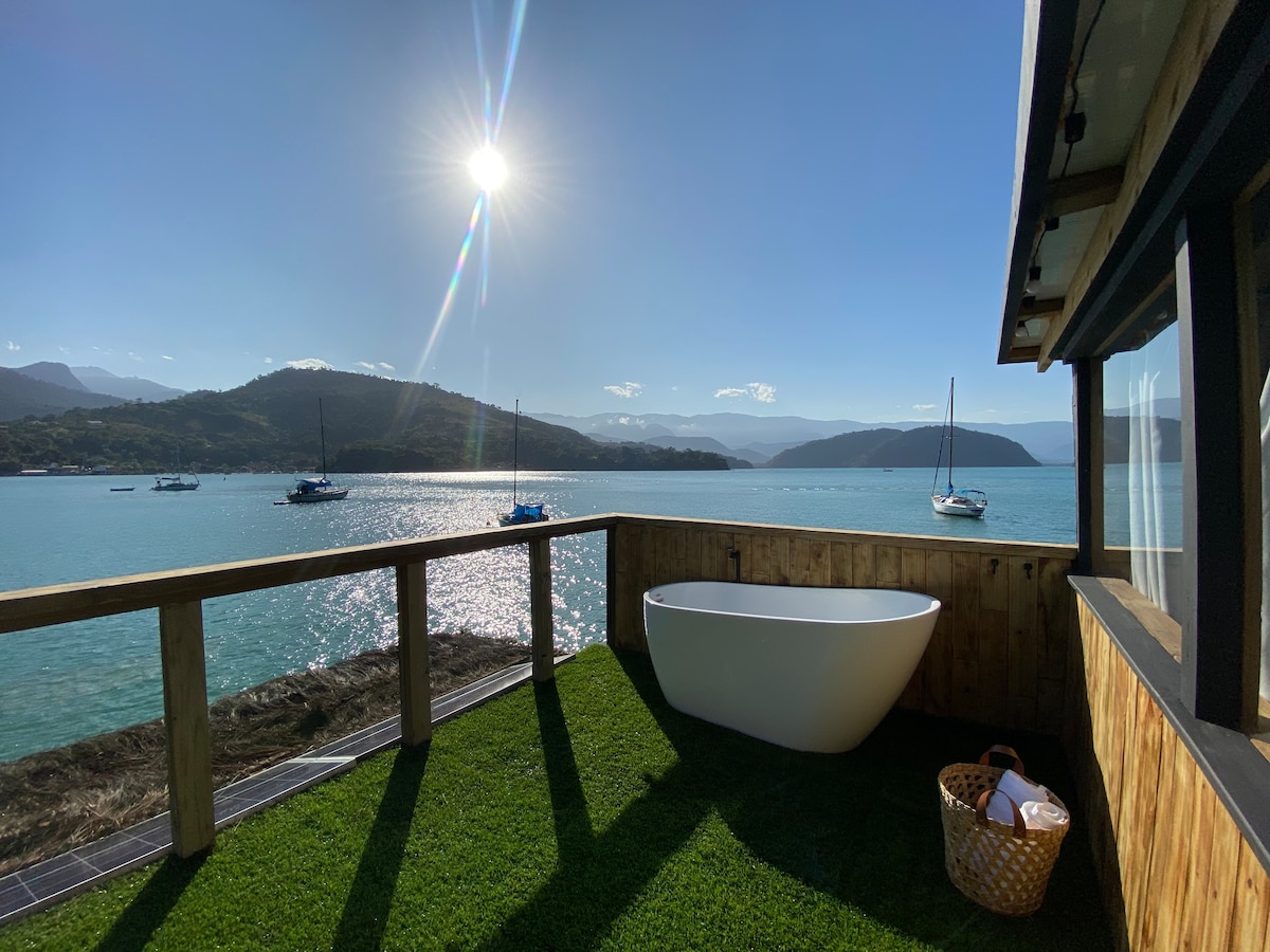 Umi gözəl Parati Körfəzində unikal qayıq evdir. Müasir və innovativ dizaynı ilə adi bir evin bütün komfortunu və rahatlığını təklif edir, lakin füsunkar Araújo adasının aydın və sakit sularından üstünlüyü ilə. Materikdən təxminən 3-5 dəqiqə, Paratinin Tarixi Mərkəzindən isə 10 km məsafədəyik. ~ dənizi hər şəkildə yaşayın ~