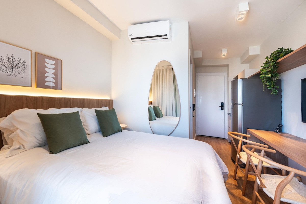 Rahatlıq, rahatlıq və incəlik birləşdirən bu tam təchiz olunmuş mənzildə San-Paulu kəşf edin. Müasir kondominiumda yerləşən və böyük xəstəxanalara yaxın olan bu yer istirahət, iş və ya tibbi müalicə üçün mükəmməldir. Kondisioner, Wi-Fi, otel keyfiyyətli yataq dəsti və dəsmallar, blender, mikrodalğalı soba, hava fritözü, çəngəl-bıçaq, şüşə qablar və Nespresso ilə təchiz olunmuş bu məkanda xoş qonaqlama üçün lazım olan hər şey var. Rahat dizayn və mükəmməl mövqe ilə təcrübəniz unudulmaz olacaq!