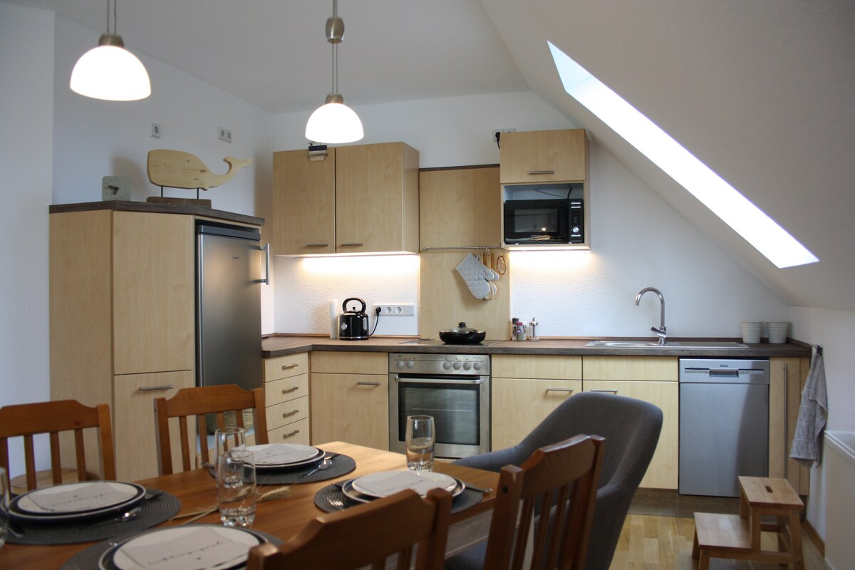 15 minutes by bus to the Christmas market (Striezelmarkt) in Dresden. 40 minutes to the ski slopes in the Ore Mountains (Altenberg). Special rates available on request for quiet groups and families :) Also suitable for up to 8 people! Wellness Facilities: Enjoy a first-class wellness weekend at my house with a sauna, a year-round heated whirlpool (up to 42°C), and a pool (cold plunge). Basics: You can expect bathrobes, towels, complimentary coffee, and a selection of herbs and spices.