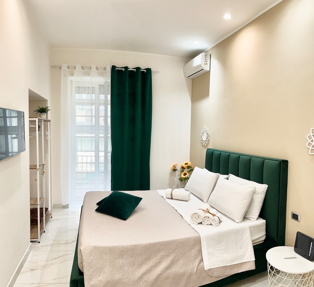 Bu qonaqlama yerinin mərkəzi mövqeyi sayəsində bütün qrup bütün şəhər və regional görməli yerlərə asanlıqla giriş əldə edəcək. Mənzil tamamilə təmirlidir, 2 böyük yataq otağı, duş ilə tamamlanmış 2 vanna otağı, mətbəx və kiçik camaşırxana var; XIX əsrin neoklassik binasının 1-ci mərtəbəsində (liftlə) yerləşir. Mərkəzi stansiyadan və Metro və Circumvesuviana-nın 1 və 2-ci xətlərindən cəmi iki dəqiqəlik məsafədədir.