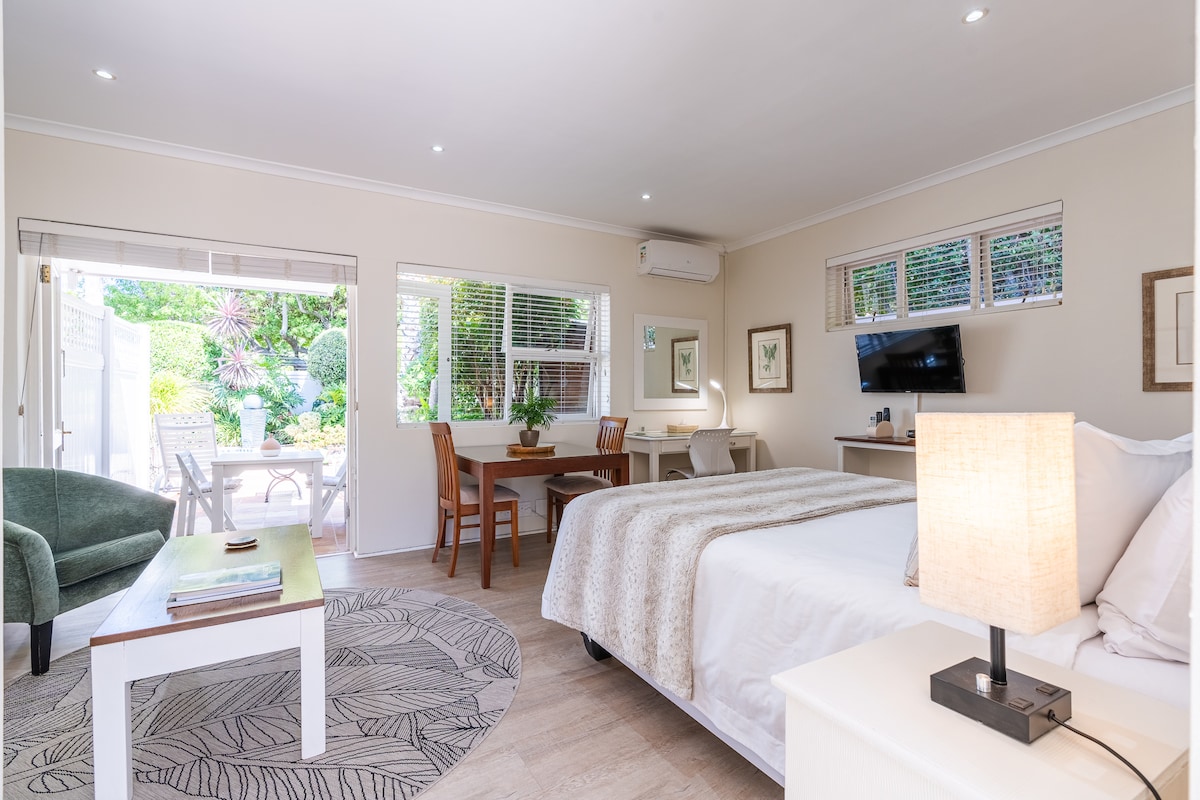 Dəbdəbəli, qüsursuz, işıqlı və rahat, kondisionerli studiya kotteci, verandaya və günəş enerjisi ilə istiləşdirilən, xlorlu duzlu hovuzuna açılan fransız qapıları var. Yüklərin daşınması zamanı işıqlar, televizor, ştepsellər və wi-fi funksiyası. Konstantiya şərab marşrutuna, çoxsaylı əla restoranlara və alış-veriş mərkəzlərinə yaxındır. Hava limanından, Keyptaundan, Claremont, Muizenberg və Hout Bay çimərliklərindən, Simon's Town, Kalk Bay, Tokai, Newlands Forest, Kirstenbosch Gardens və V&A Waterfront-dan avtomobillə 30 dəqiqəlik məsafədə.