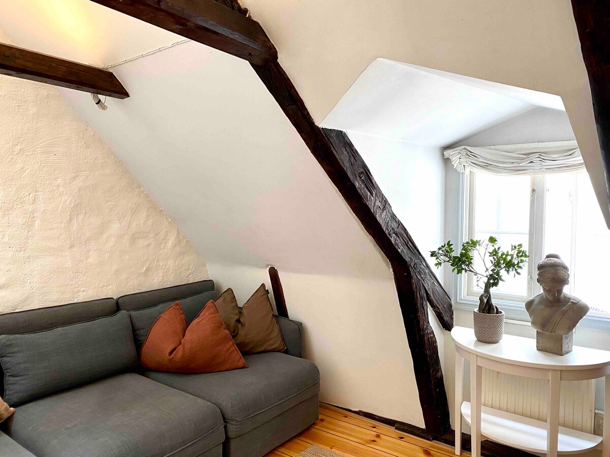 1557-ci ildə tikilmiş, mətbəx, hamam otağı və yataq otağı ilə (2022) tamamilə təmir edilmiş evdəki füsunkar, unikal loft mənzilimizə xoş gəlmisiniz. İçəri Şəhərin mütləq mərkəzində yerləşir (Qamla Sten). Buradan Stokholmun ən görməli yerlərinə, o cümlədən Kral Sarayına və Nobel muzeyinə piyada məsafə var. Qapının ağzında mükafat qazanan restoranlar və əla alış-veriş tapa bilərsiniz. Metro/avtobusla piyada 3 dəq. Mərkəzi stansiyaya piyada 10 dəq.