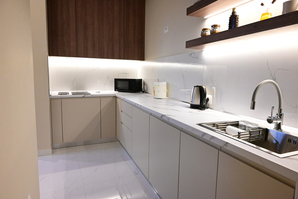 European Elegance Homes müasir Avropa estetikasının rahatlıq və funksionallıqla birləşdiyi, düşünülmüş şəkildə dizayn edilmiş iki yataq otaqlı mənzili təqdim edir. Təbii teksturalar, zərif tərtibat və mikrosement divarlar sakit atmosfer yaradır. İstilik sistemi olan döşəmələr və mərkəzi kondisioner il boyu rahatlıq təmin edir, əsas yataq otağındakı sərbəst dayanan vannada isə səssizcə lüksə qərq olun. Seçilmiş mebel, sənət əsərləri və incə Albaniya aktsentləri məkanı tamamlayır. Şəhər mənzərəsi ilə dincəlmək üçün özəl balkon.