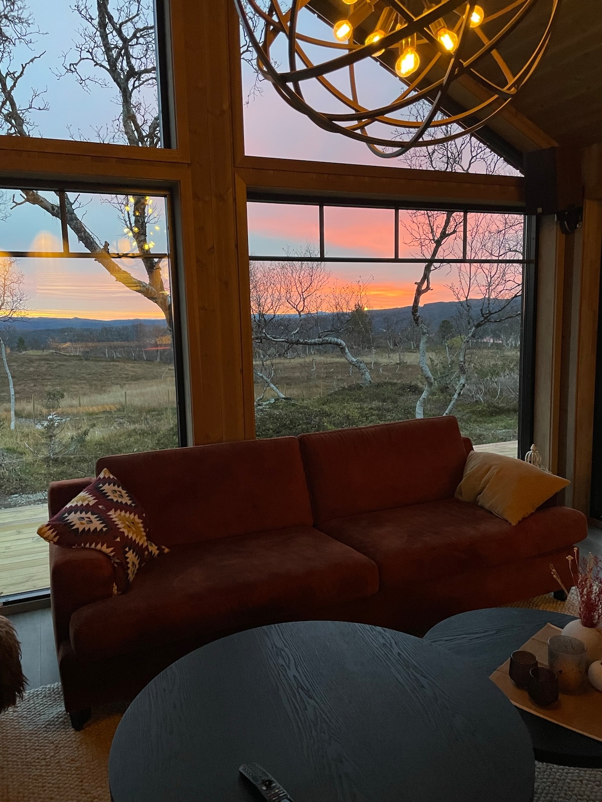 Nybygd tretopphytte i Romundstadbygda i Rindal, med 360° fantastisk panoramautsikt til fjellene i Trollheimen. Kom hit og nyt utsikten i helt stille omgivelser uten noen naboer eller forstyrrelser. Mye dyreliv i området, her kan det plutselig vandre en elg rett utenfor verandaen. Oppkjørt skiløype 150m fra hytta, veldig gode turmuligheter sommer og vinter. Mulighet for fiske og småviltjakt. Fiskekort og småviltkort i Rindal utmarkslag er inkludert i leien.